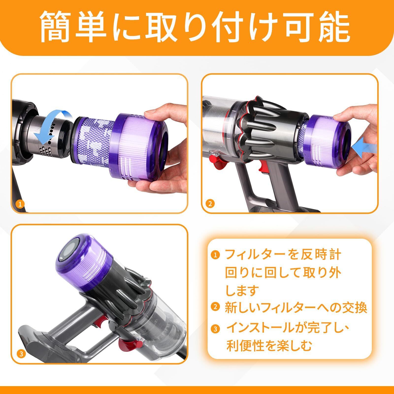 【在庫処分】ダイソンSV18掃除機用フィルター、ダイソンDigital Slim Fluffy (SV18 FFN) 、SV18 FF COM2、SV18 FF H AM、SV18 FF OR2 AM互換性バキューム掃除機対応、HEPAフィルター 水洗可能、番号:97061201