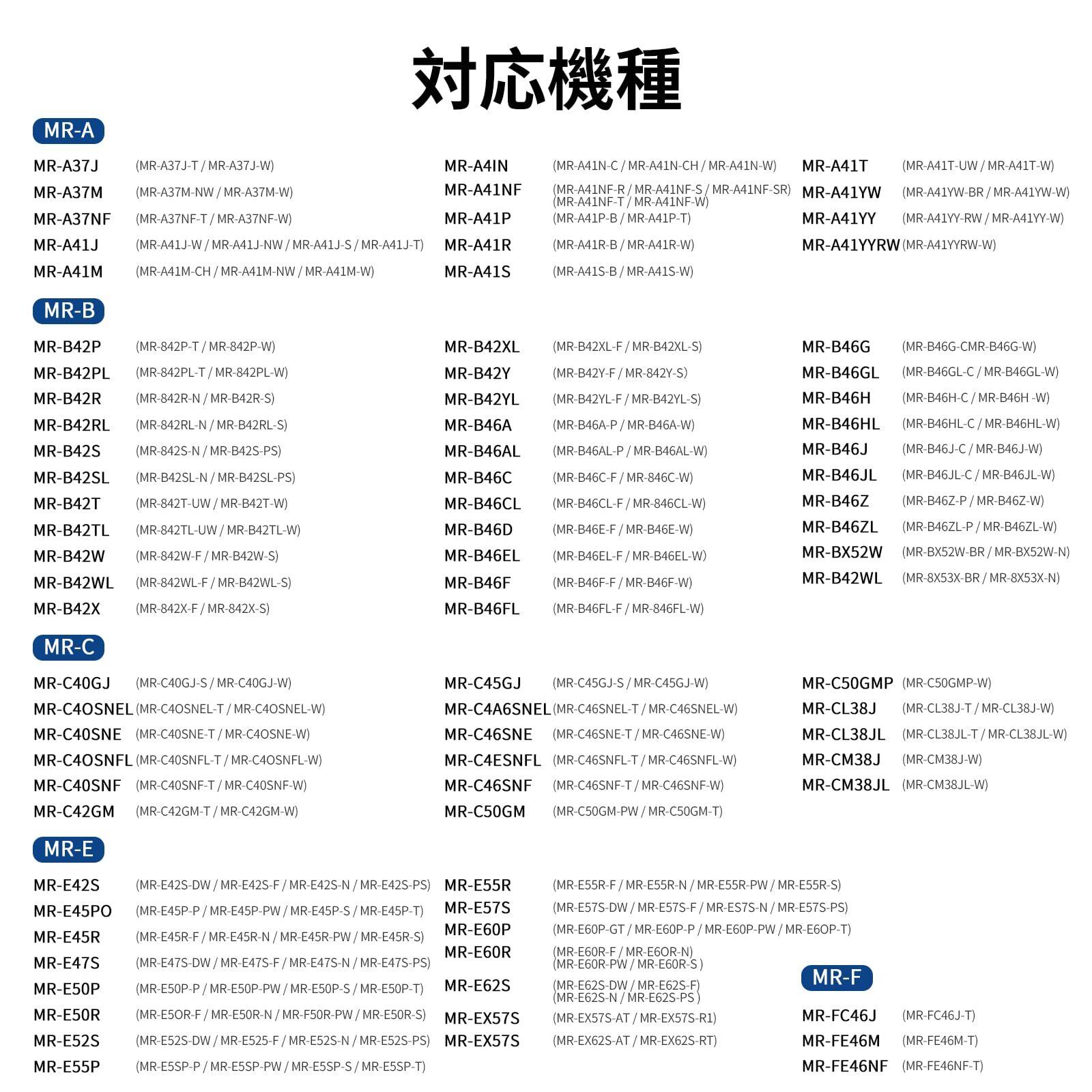【対応機種】 MRPR-01FT MR-JX52W M20VJ5526 MR-JX53Z MR-JX61Y MR-JX60W MR-MB45E MR-WX47C MR-WX71Z MR-B46D MR-RX47T MR-RX52T MR-WX60A MR-MX50F MR-MX57D MR-B46A MR-R47W MR-WX47D MR-A41J MR-A41JS MR-A41M MR-A41N MR-A41NF MR-A41NFS MR-A41R MR-A41SB MR-A41T MR-A41YW MR-A41YY MR-B42T MR-A37JT MR-A37M MR-A37NFなどのMR-AシリーズからMR-Zシリーズまでの三菱冷蔵庫に対応しています。より詳細な対応機種については、商品紹介画像をご覧ください。