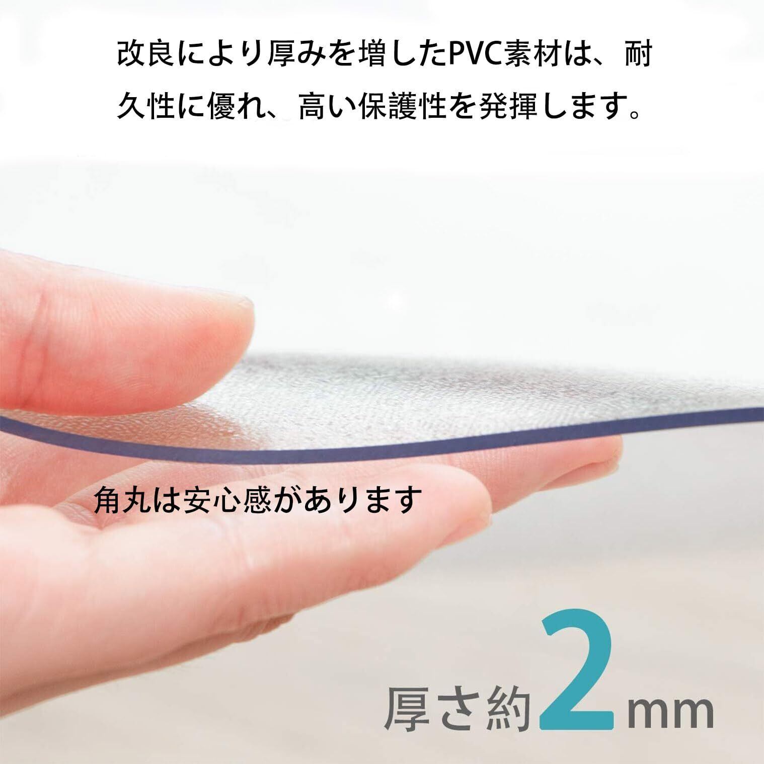 1、高品質なポリ塩化ビニル(PVC)素材を使用しており、環境に優しいです。健康的なプラスチック素材で、無臭です。厚さは2mmがあり、お好みに応じて適切な厚さをお選びください。 2、透明なので、フロアタイル本来の色を保ちながら、部屋全体を明るくすることができます。 3、防水性、耐油性、高温耐性があり、耐久性を持っています。適度な冷蔵庫と床れんがですを置く際の衝撃を効果的に和らげ、フロアタイルの損傷も防ぎます。 4、掃除がとても簡単です。子供が飲み物やスープをこぼしても、ティッシュやタオルでさっと拭くだけで、すぐにきれいになります。 5、注意事項: (1)製品サイズは平置きでの手動測定によるもので、測定方法の違いにより±3cm度の誤差が生じる場合があります。あらかじめご了承ください。 (2)使用時の温度は120℃を超えないようにご注意ください。高温の物をテーブルの上に置く際は、必ず耐熱マットをご使用ください。 (3)冷蔵庫マットは折り畳めで倉庫に預かリますので、折り目があります。気になる場合一度アイロンをかけてください。 (4)商品写真はできる限り実物の色に近づけるよう加工しておりますが、 お客様のお使いのモニター設定、お部屋の照明等により実際の商品と色味が異なる場合がございます。