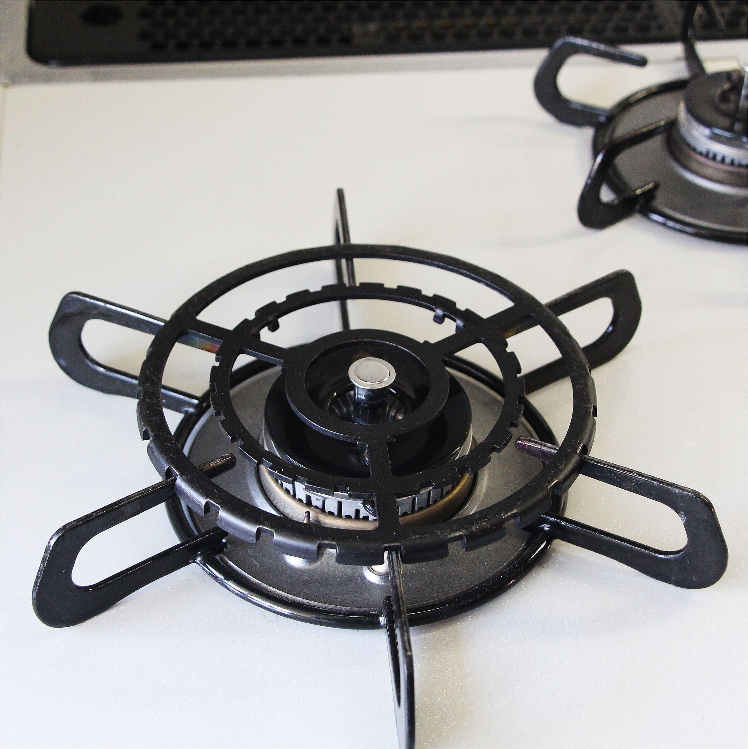 【安定性抜群】このミニ五徳は特殊溝設計で、外径溝24個、内径は4つの滑り止め爪がありますので、どんなバーナーストーブでも使用できる、汎用性が高いミニ五徳です。使う際はストーブ本来の五徳の足にセットしやすい、ズレにくく、安定性抜群! アウトドア用品としても携帯便利で使えやすいし、鍋やケトルをより安定で使える補助器具になります。見た目もお洒落で錆びにくく、お手入れも簡単。また、黒いで汚れも目立たないで使いやすいミニ五徳。
