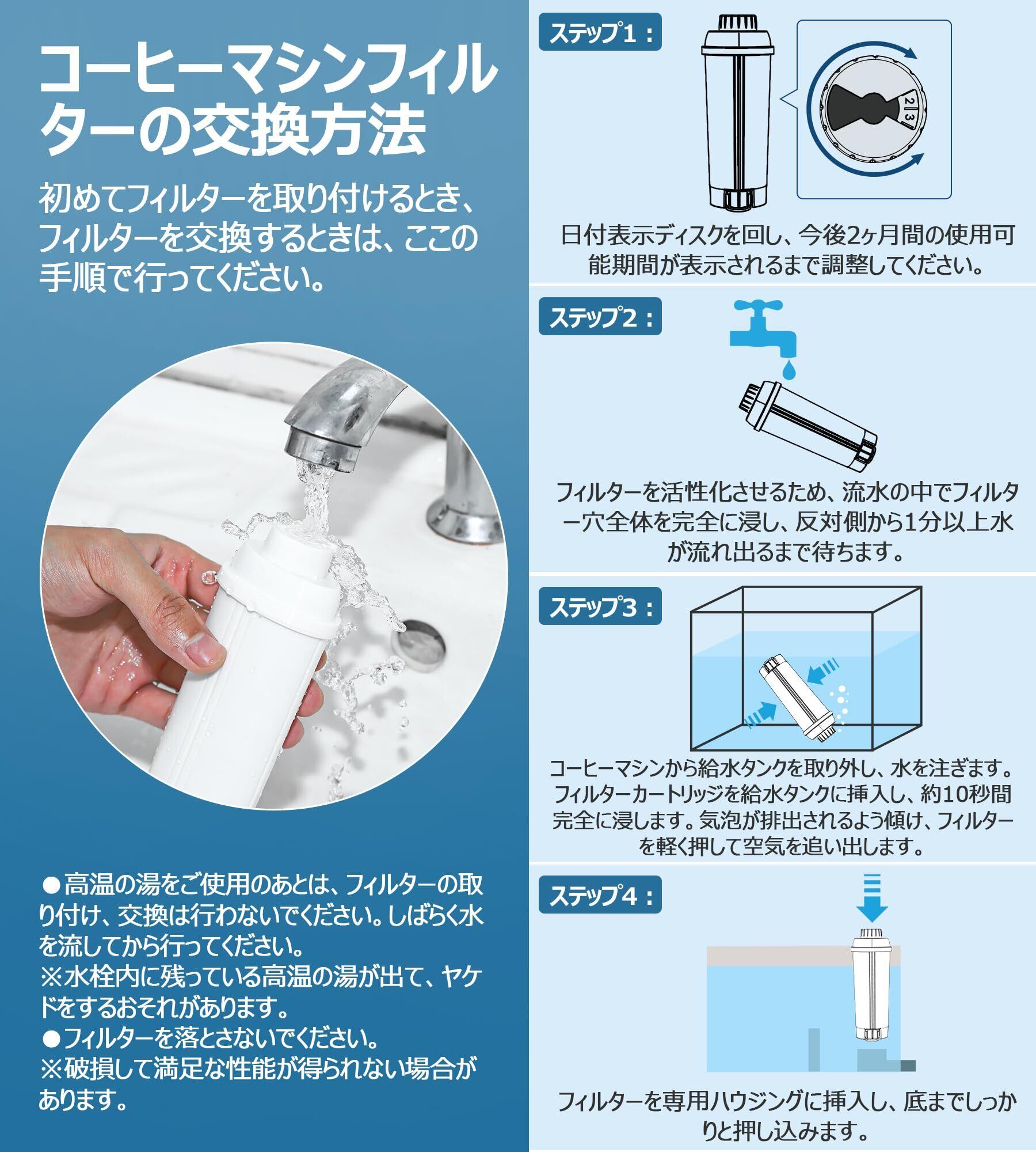 DLSC002 ウォーターフィルター デロンギ全自動コーヒーマシン用 浄水カートリッジ フィルター メンテナンス ECAMシリーズ、ダイナミカ、カプチーノシステム、マグニフィカ、ETAM Autentica、エサム 交換用フィルター 2個セット