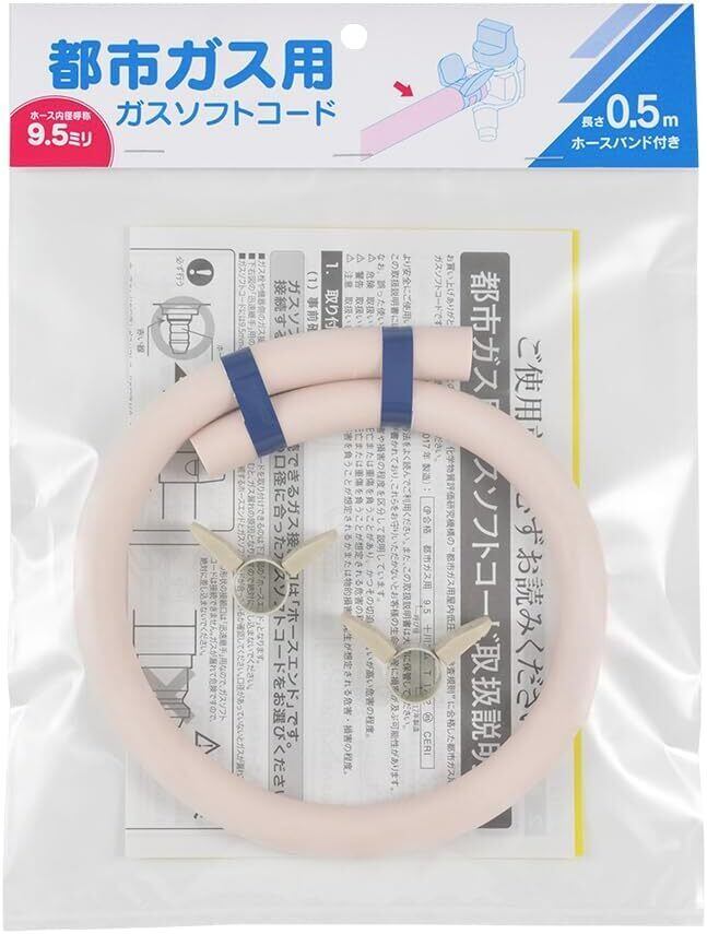JIS規格品 十川ゴム製 長さ0.5m 都市ガス用 ガスコンロ用 ガスホース ダンロップDUNLOP代替品 ホース 内径9.5mm ホースバンド付き( パステルベージュ0.5m )