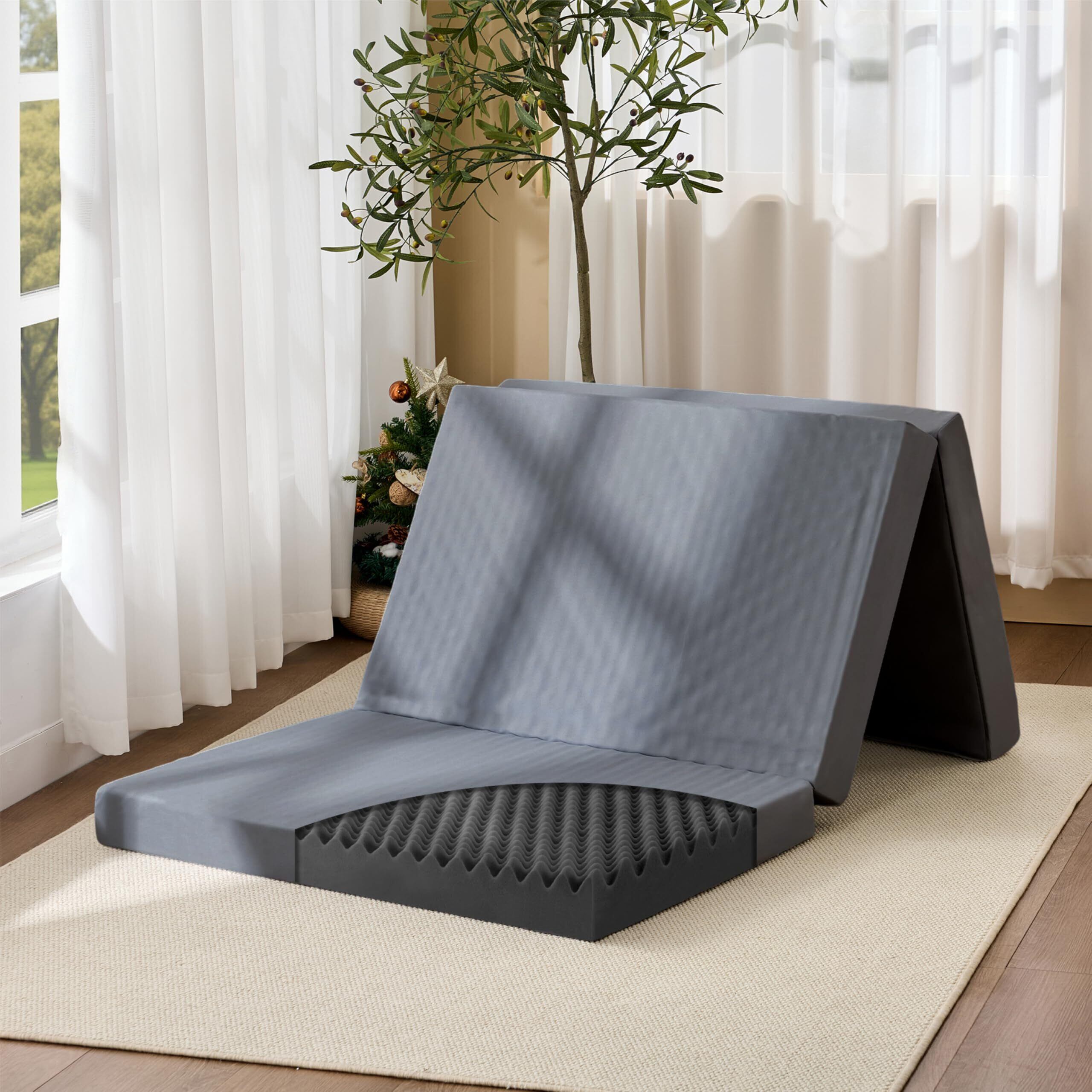 【在庫処分】マットレス ダブル 三つ折り 純高反発 230N 35D 凹凸構造 竹炭配合 5年 防臭抗菌 キャンプ/車中泊/来客/防災用に最適 厚10cm カバー洗える ダークグレー 195*140*10CM
