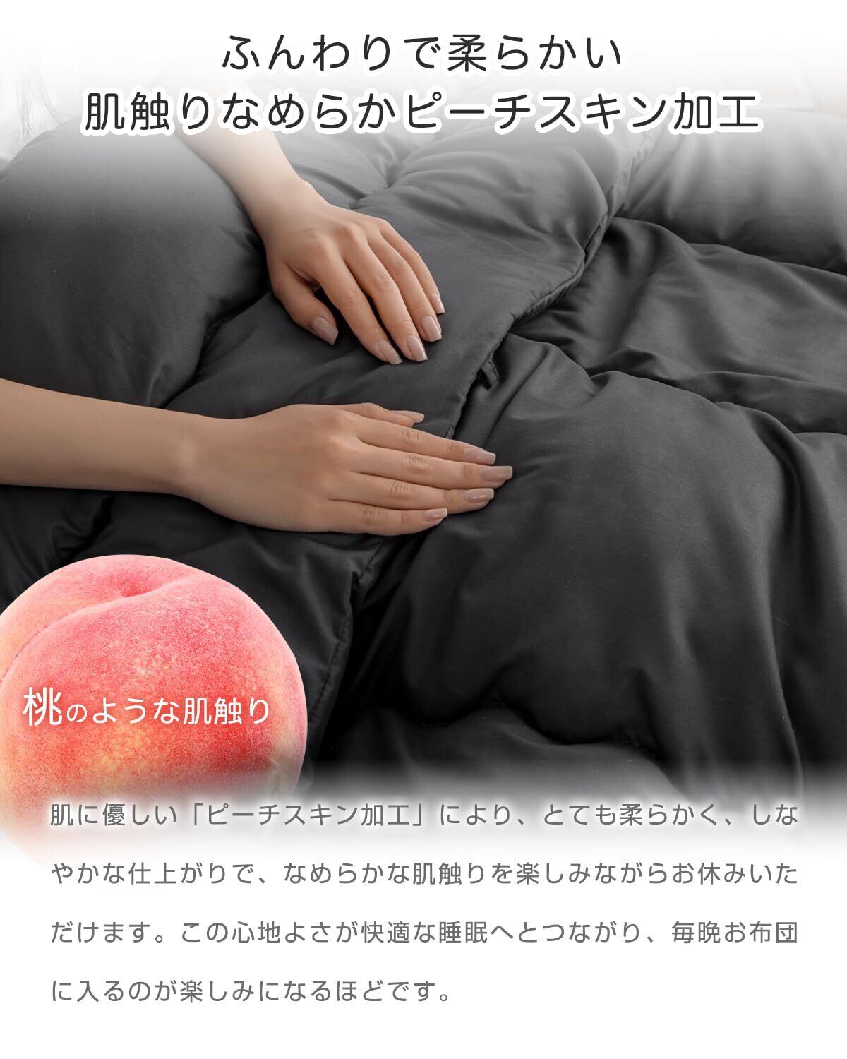 【ふんわり・柔らかい】肌に優しい「ピーチスキン加工」で、とても柔らかく、しなやかに仕上がっており、寝ているときも身体が包み込まれているような感覚を味わえます。