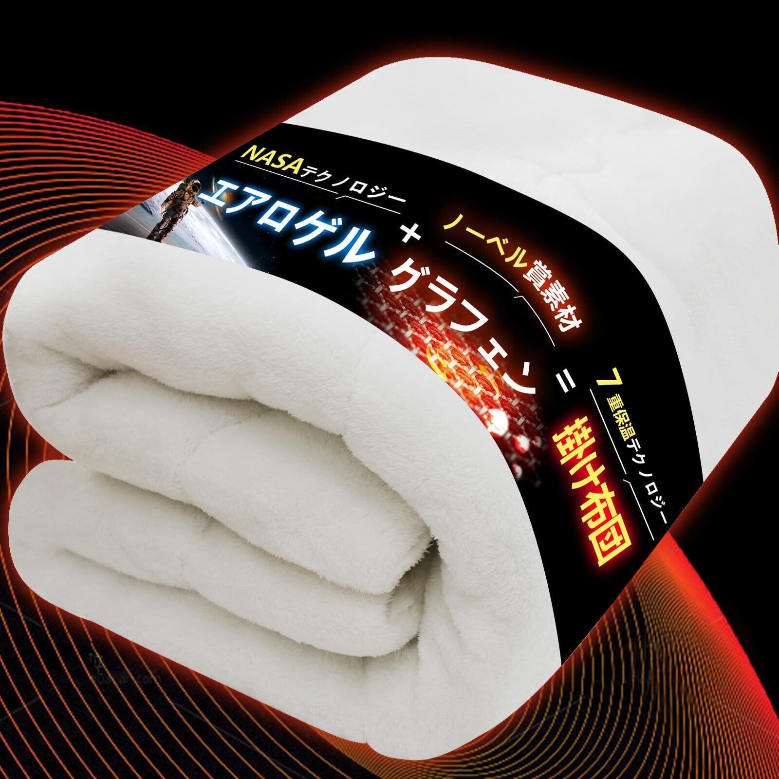 【NASA由来の断熱素材エアロゲル繊維で、宇宙級の断熱力】NASAの宇宙服にも採用されている超断熱素材「エアロゲル」を中綿に使用します。驚くほど軽く、断熱性に優れ、外気の冷たさをしっかりブロックします。布団内の熱を逃さず、まるで熱を閉じ込めたカプセルのような感覚に。厳寒の夜でも、布団に入った瞬間からぬくもりが持続し、全身を温め、朝まで快適な睡眠をサポートします。