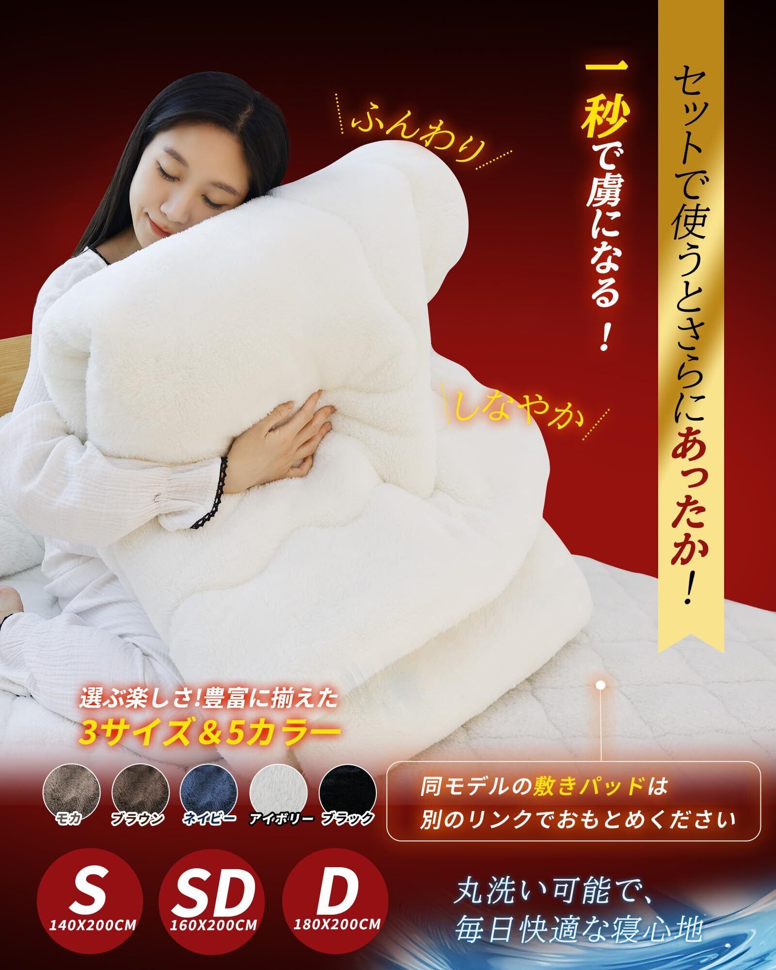 【未来素材×職人技、究極の暖かさを纏う】極寒に求められるのは、「掛け布団」だけではなく、心まで温めてくれる存在です。この7重保温掛け布団の表地・裏地には、まるで高級カシミヤのような超柔長毛素材を贅沢に使用。10mmのロングパイルのなか、空気をたっぷり含み、ふんわりと包まれるような安心感を実現します。じんわり広がる接触温感、光触媒制菌加工による清潔、日本伝統の椿油加工による保湿ケアを保つ、肌にも心にも優しい仕上がりです。