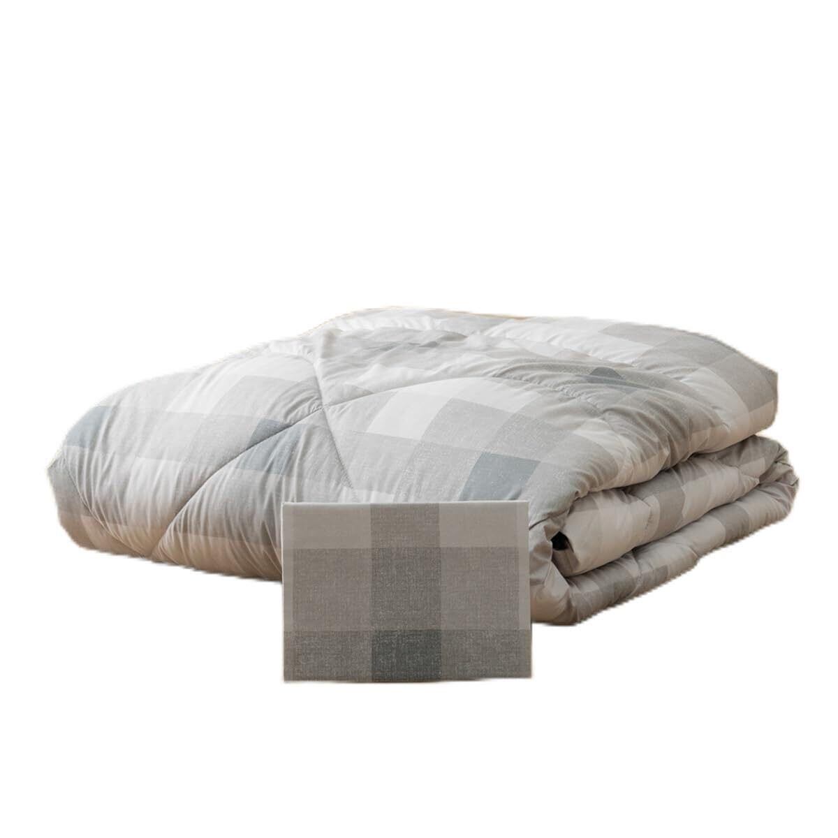 掛ふとんと枕カバーの2点セット。 面倒なカバーかけなしで使える掛ふとん。 まくらカバーは掛けふとんとお揃いのチェック柄。