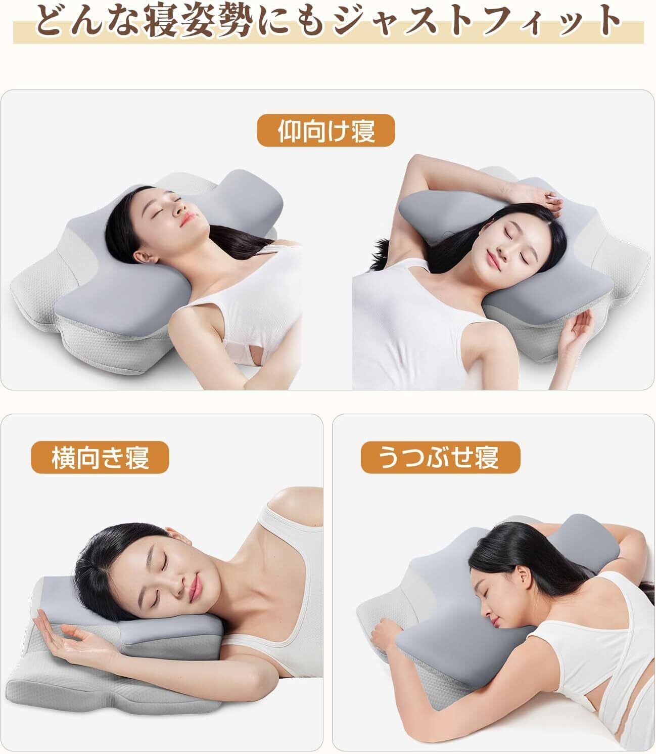 【特価セール】枕 まくら 首が痛くならない 腕をやさしくサポート 快眠 低反発枕 頭・首・肩を支える 仰向け・横向き・うつぶせ対応 3D人間工学設計 安眠枕 低め・高め調整可能 ネックピロー 通気性 pillow カバー洗濯可能 誕生日 母の日 父の日 プレゼント ライトグレー