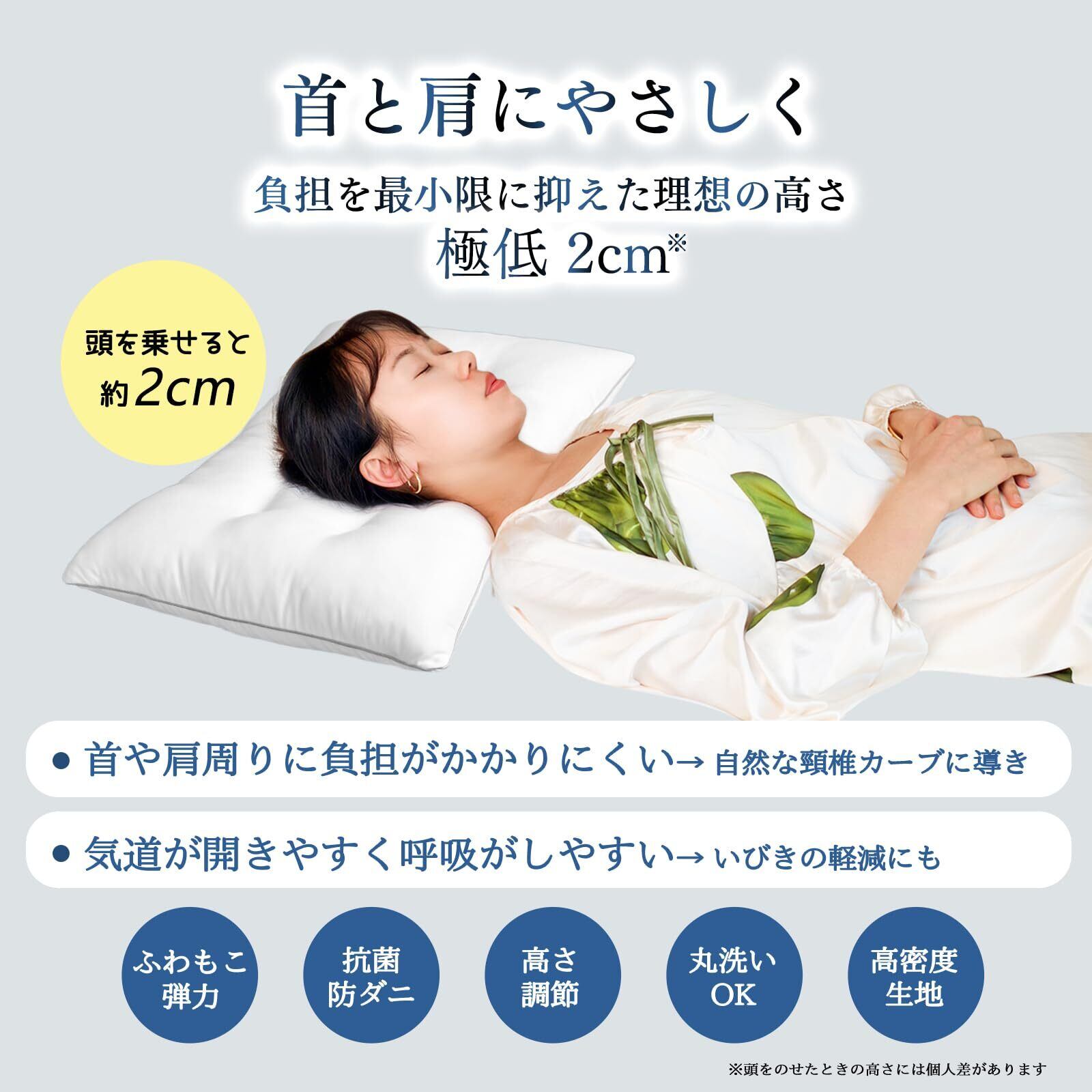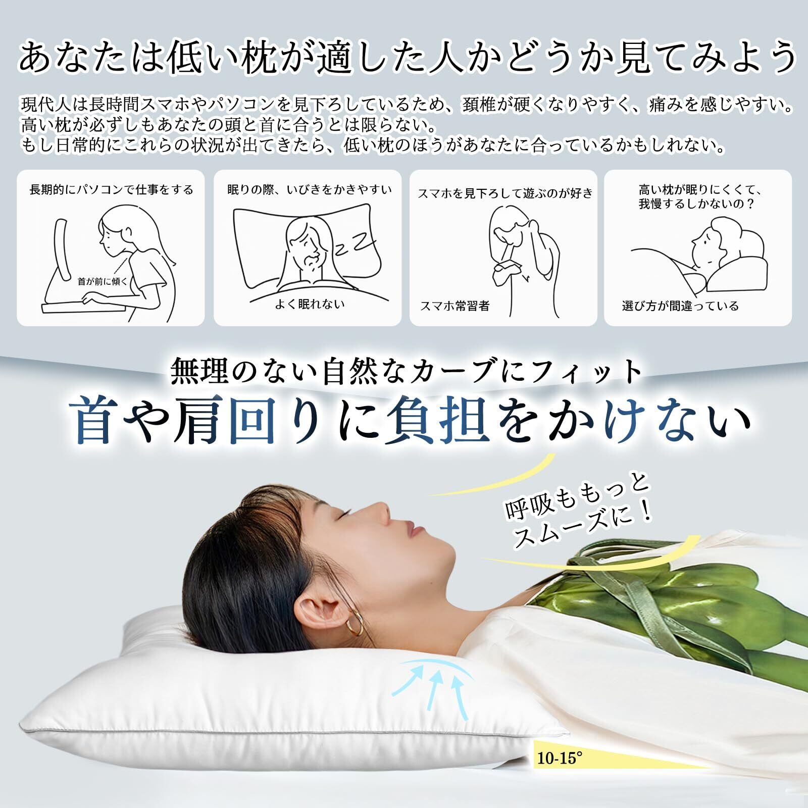 CozySleep 枕 低め 極スリム2cm 首が痛くならない 低い枕 首や肩の負担を軽減 自然な姿勢を保てる 安眠枕 睡眠専門医と共同開発 高さ調整可能 洗える ふわふわ 柔らかい 薄い枕 仰向け 横向き対応 快眠枕 抗菌防臭 高密度生地 通気性 立体構造 羽毛代替素材 マイクロファイバー綿 ホワイト