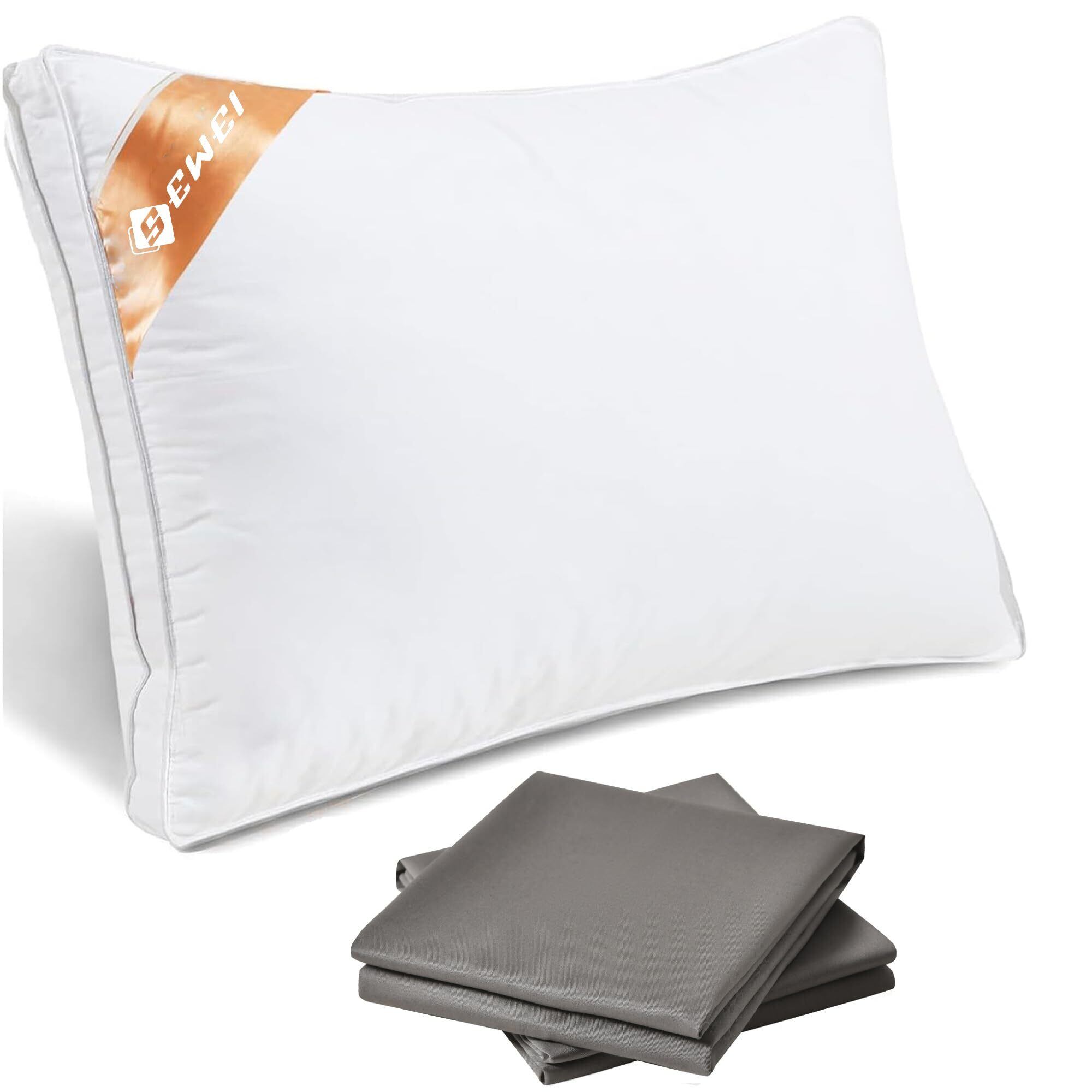 【在庫処分】枕 カバー2枚付き まくら 高級ホテル仕様 高反発枕 快眠 pillow 安眠枕 横向き寝 高め 立体構造 丸洗い可能 63x43x20cm(グレーの枕カバー2枚付き)