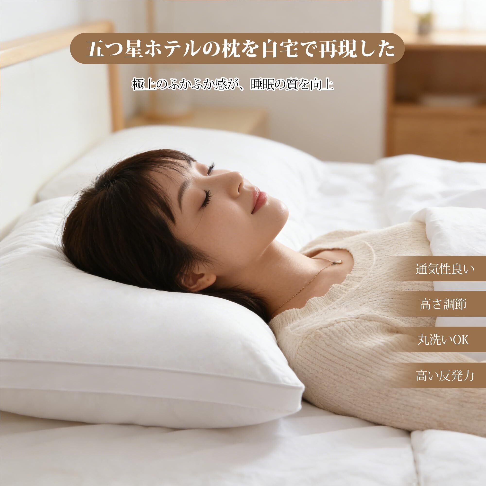 【丸洗いOK】 枕本体は洗濯機で丸洗いできます。洗濯後も型崩れやダマになりにくく、時間と手間を節約し、清潔でふわふわな状態を長く保ちます。毎日のお手入れも簡単で効率的です。