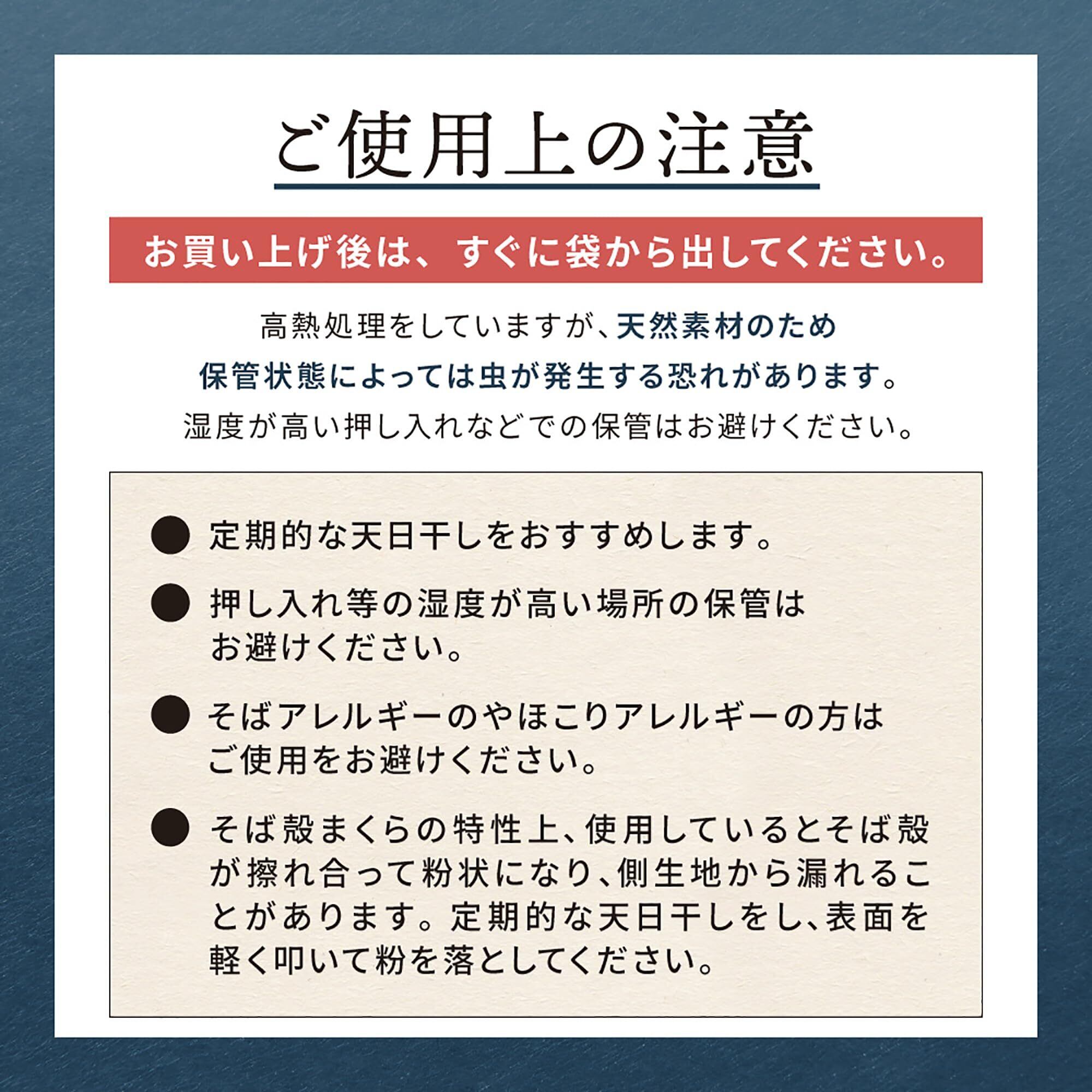 本製品はそば殻を使用しています。そばアレルギーの方はご使用をお避けください。
