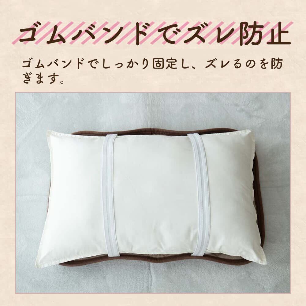 【ゴム付きでらくらく取付】裏綿にゴムバンドを装備し、寝返りや動きによる枕とのずれを最小限に抑えます。通常のゴムバンドに比べて、洗濯や長時間の使用でも伸びにくい特殊強化ゴムを採用しています。
