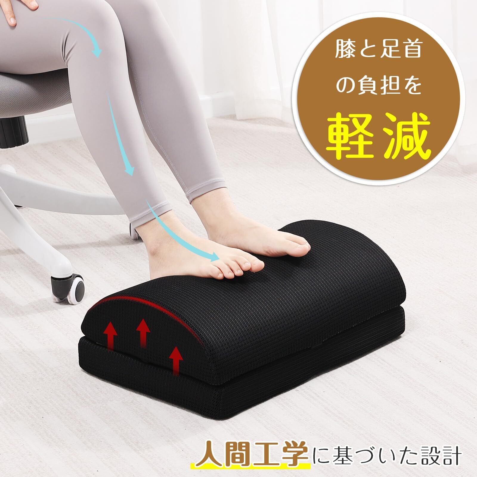 Shinnwa フットレスト デスク下 足置き 足置き台 足枕 リモートワーク 整体洗濯可能 2段階高さ調整 足置きクッション オフィス・在宅勤務・休息用 リラックスサポート 超通気メッシュカバー 滑り止め加工 ブラック