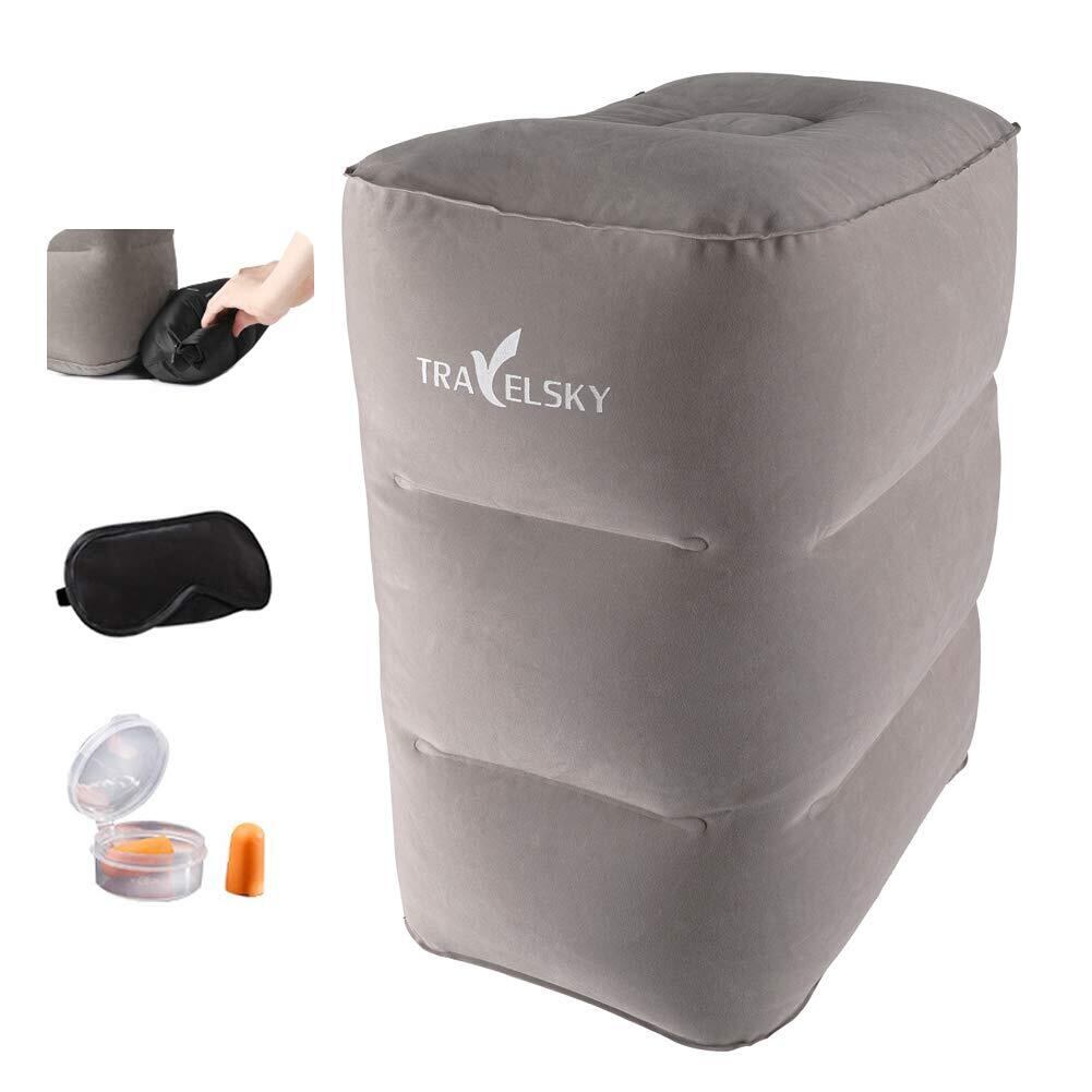 【2022最新】フットレスト 飛行機 足置き エアー オットマン 足枕クッション 車 オフィス フットピロー むくみ 旅行便利グッズ エコノミー症候群対策 ポンプ不要 収納袋付 VanFn