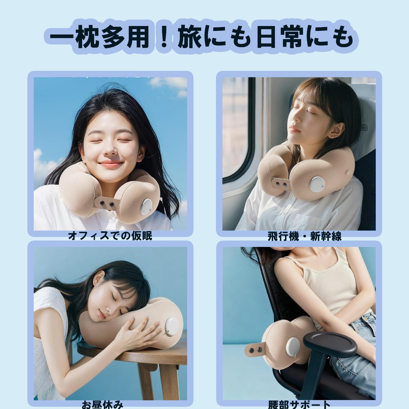 【20秒で簡単に膨らむ!】口をつけずに膨らむ!たった20秒で完璧な膨らみを実現する独自の空弁システムを採用。面倒な息吹き込みは不要で、飛行機の離着陸時や新幹線の短い停車時間でもすぐに使用可能。高品質TPU素材の採用で空気漏れを最小化し、繰り返し使用後も膨らみの持続性が高い。忙しい現代人にぴったりの時短設計で、旅行の準備のストレスを軽減。お好みやシーンに合わせて硬さを自由にカスタマイズ可能。空気枕 でありながら驚くほど簡単な操作性は、あらゆる年齢層に支持される理由です。