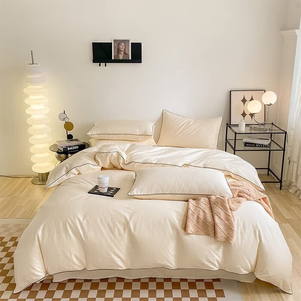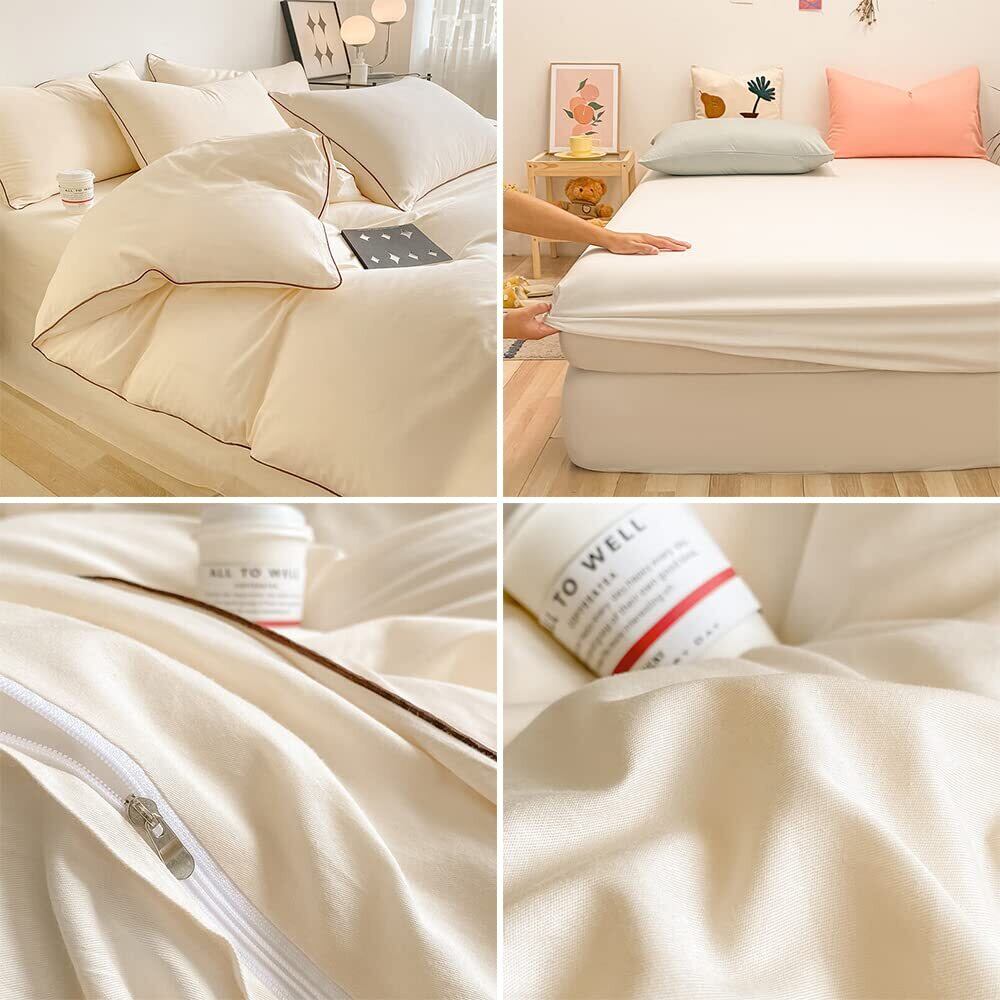 【人気商品】【 限定】 布団カバー 綿 100% シングル 3点セット 寝具カバーセット 美しいエッジのデザイン 洋式・和式兼用 無地 掛け布団カバー ボックスシーツ 枕カバー ベッド用 布団用 高密度生地 布団カバーセット 洗い替え速乾タイプ 抗菌防臭 防ダニ (シングル,ミルクセーキ白)