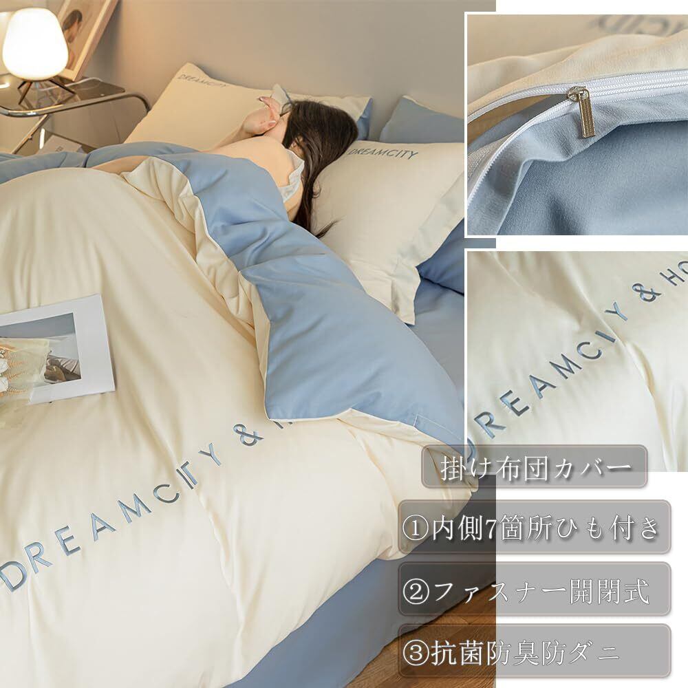 【 限定】 布団カバー 綿 100% シングル 3点セット 寝具カバーセット 刺繍 洋式・和式兼用 無地 掛け布団カバー ボックスシーツ 枕カバー ベッド用 布団用 高密度生地 布団カバーセット 洗い替え速乾タイプ 防ダニ (シングル,ミルクセーキ白&ライトブルー)