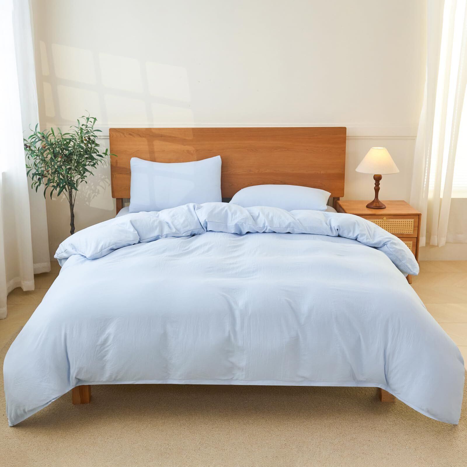 HOdo Home 布団カバー セミダブル 4点セット 洗いざらし やわらか 布団カバー 布団カバーセット ボックスシーツ 枕カバー 寝具カバーセット 吸水速乾 丸洗いOK 肌に優しい 無地 シンプル オールシーズン ピーチスキン加工 (セミダブル ブルー)