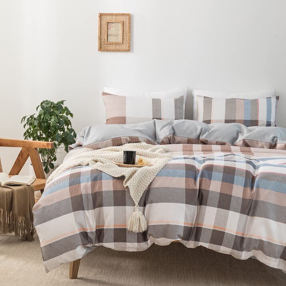 綿混 布団カバー シングル 3点セット 布団かばー ベットカバー 8ヶ所ヒモ付き 高密度生地 ピーチスキン加工 寝具カバーセットブラウン ブルー 柄 洗い替え 速乾 防ダニ 洋式・和式兼用 肌に優しい