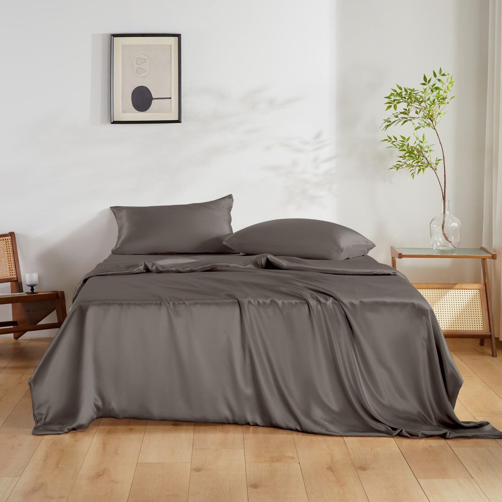 [THXSILK] 寝具カバーセット 布団カバーセット シルク 美髪・美肌 敏感肌 静電気防止 防ダニ・抗菌 丸洗いOK OEKO認証 環境に優しい 睡眠サポート 寝癖軽減 四季適応 ギフト(ダークグレー セミダブル・4点セット)