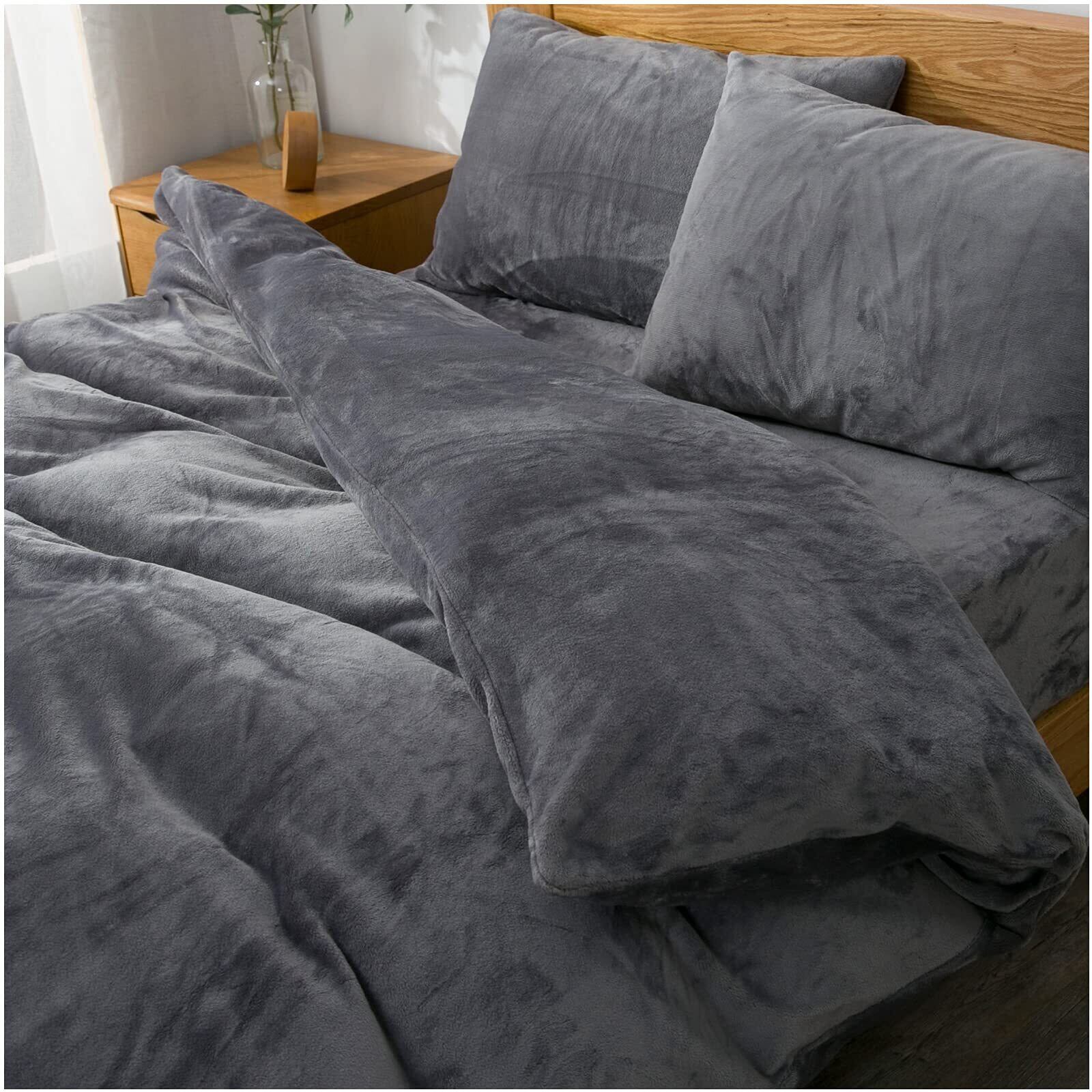 Lemon Bear 掛け布団カバー セミダブル あったか 布団カバー 冬 マイクロファイバー かけ布団カバー 毛布にもなる2WAY仕様 掛けカバー 掛けふとんカバー 静電気防止 抗菌防臭 スナップボタン (セミダブル・170×210cm グレー)