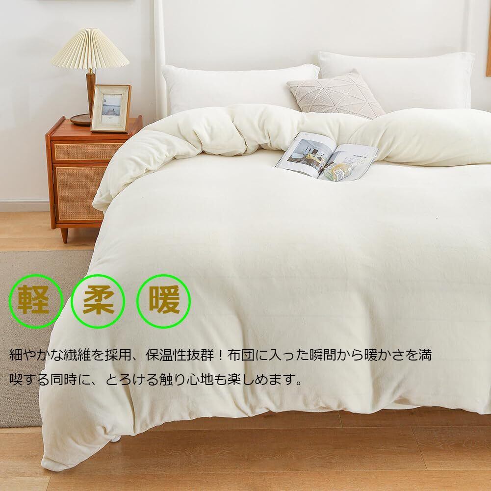 【数量限定】掛け布団カバー ダブル 冬 あったか 発熱 極細マイクロファイバー 静電気抑制 厚手 起毛 もこもこ 毛布カバー 全開ファスナー ヒモ8ヶ所付 羽毛布団カバー 通気速乾 ふわふわ 柔らかい 冬用ふとんカバー 毛抜けにくい フランネル 抗菌防ダニ(190*210cm, アイボリー)