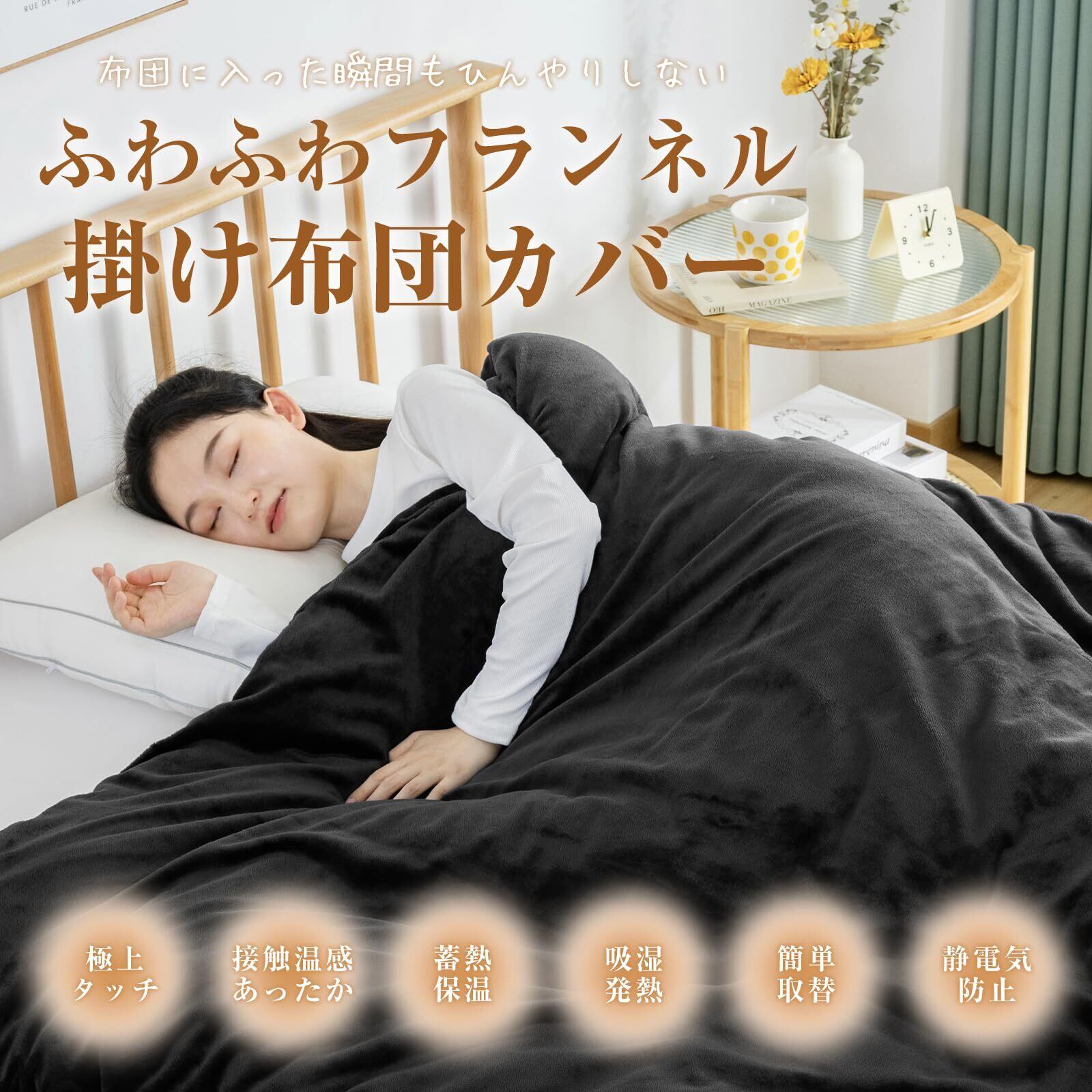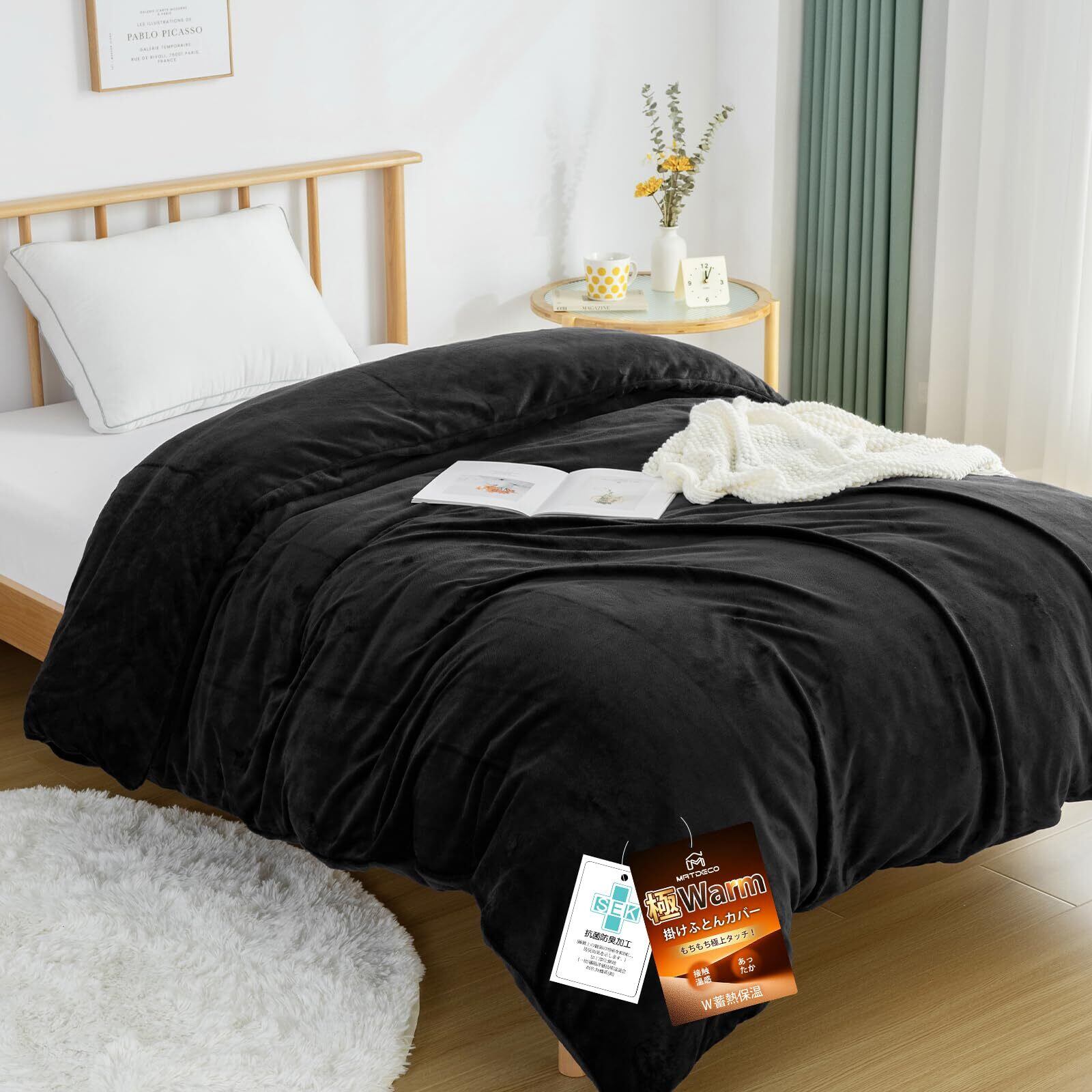 【在庫セール】Matdeco 掛け布団カバー セミダブル 冬 あったか 羽毛布団・毛布カバー 暖かい フランネル 蓄熱保温 厚手 極細マイクロファイバー 毛布にもなる掛け布団カバー 静電気防止抗菌防臭 蓄熱保温 洗える 速乾 スナップボタン8箇所&ダブルファスナー 着脱簡単 丸洗いOK (セミダブル・170X210cm ブラック)