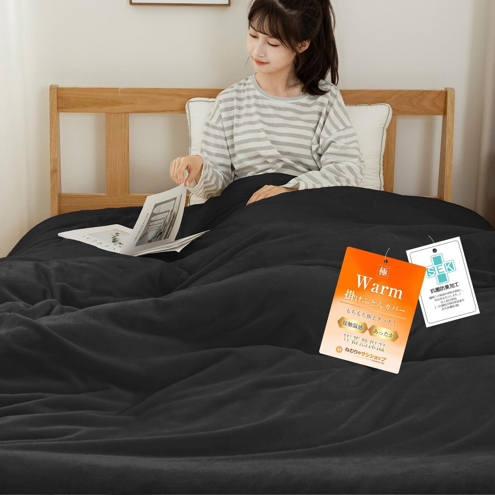 掛け布団カバー セミダブル 冬 フランネル あったか 暖かい 布団カバー 掛けふとんカバー 極細マイクロファイバー 毛布カバー かけ布団カバー 蓄熱保温 吸湿発熱 ふわふわ 接触温感 冬用 抗菌防臭 毛布にもなる2WAY 静電気防止 全開ファスナ&8ヶ所ボタン セミダブル 170×210cm ブラック