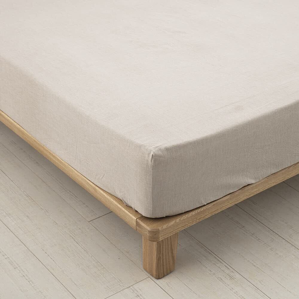ボックスシーツ キング 180x200x30cm オーガニックコットン 洗いざらしの綿100% ベッドシーツ BOXシーツ 防ダニ ベージュ