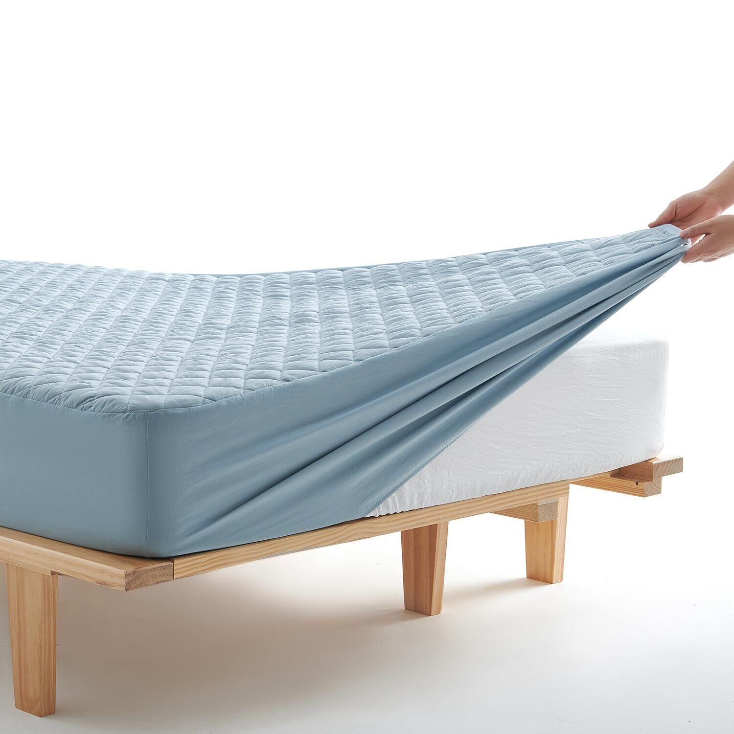 クモリ(Kumori) パッド一体型ボックスシーツ シングル 洗いざらし 柔らか 肌にやさしい ピーチスキン 耐久性が高い 吸湿速乾 着脱簡単 1枚両得 時短 洗える 抗菌防臭加工 オールシーズン ズレにくい 敷きパッド ベットパッド マットレスパッド 敷ふとん兼用(100X200cm,ブルー)