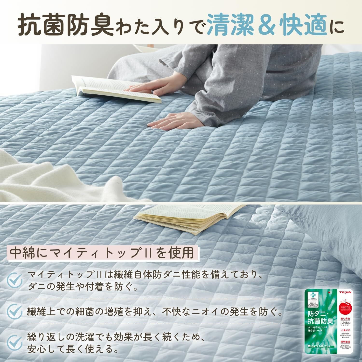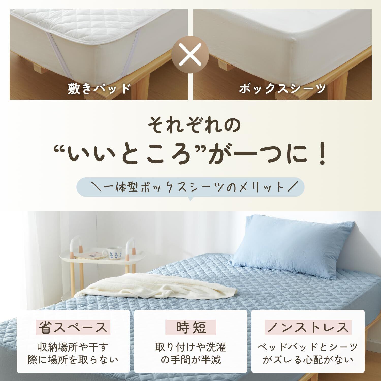 【1枚両得:敷きパッドとボックスシーツ】ベッドパッドとボックスシーツが一体型になったデザインで、ベッドメイキングが驚くほど簡単!全周ゴム仕様で、寝返りをしてもズレにくく、常にきれいな状態を保ちます。これ一枚でシンプルに整えられるので、家事の時間を短縮し、快適さを持続できます。