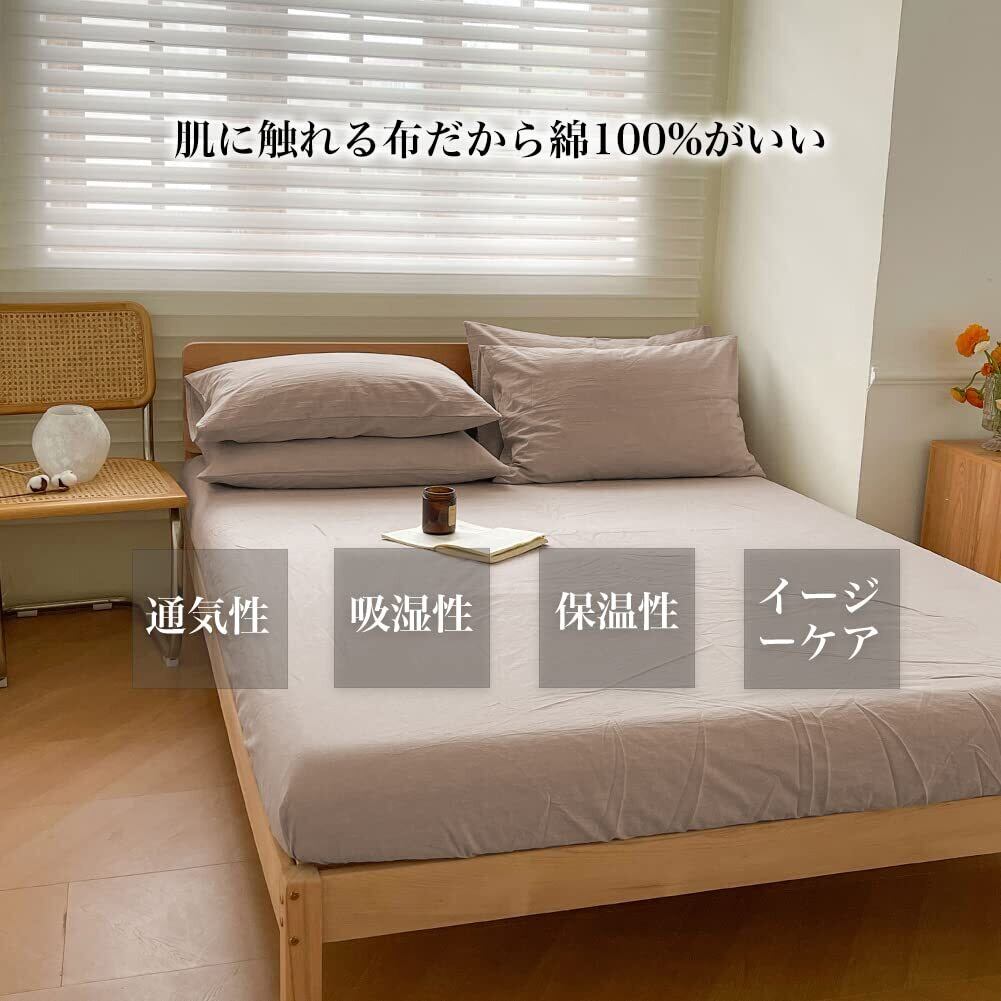 ボックスシーツ セミダブル オーガニックコットン 綿100% 綿洗いざらし ベッドシーツ マットレスカバー BOXシーツ オールシーズン 120×200×30cm 単品売り 防ダニ 全周ゴム付き 洗える 毛玉なし ベージュ