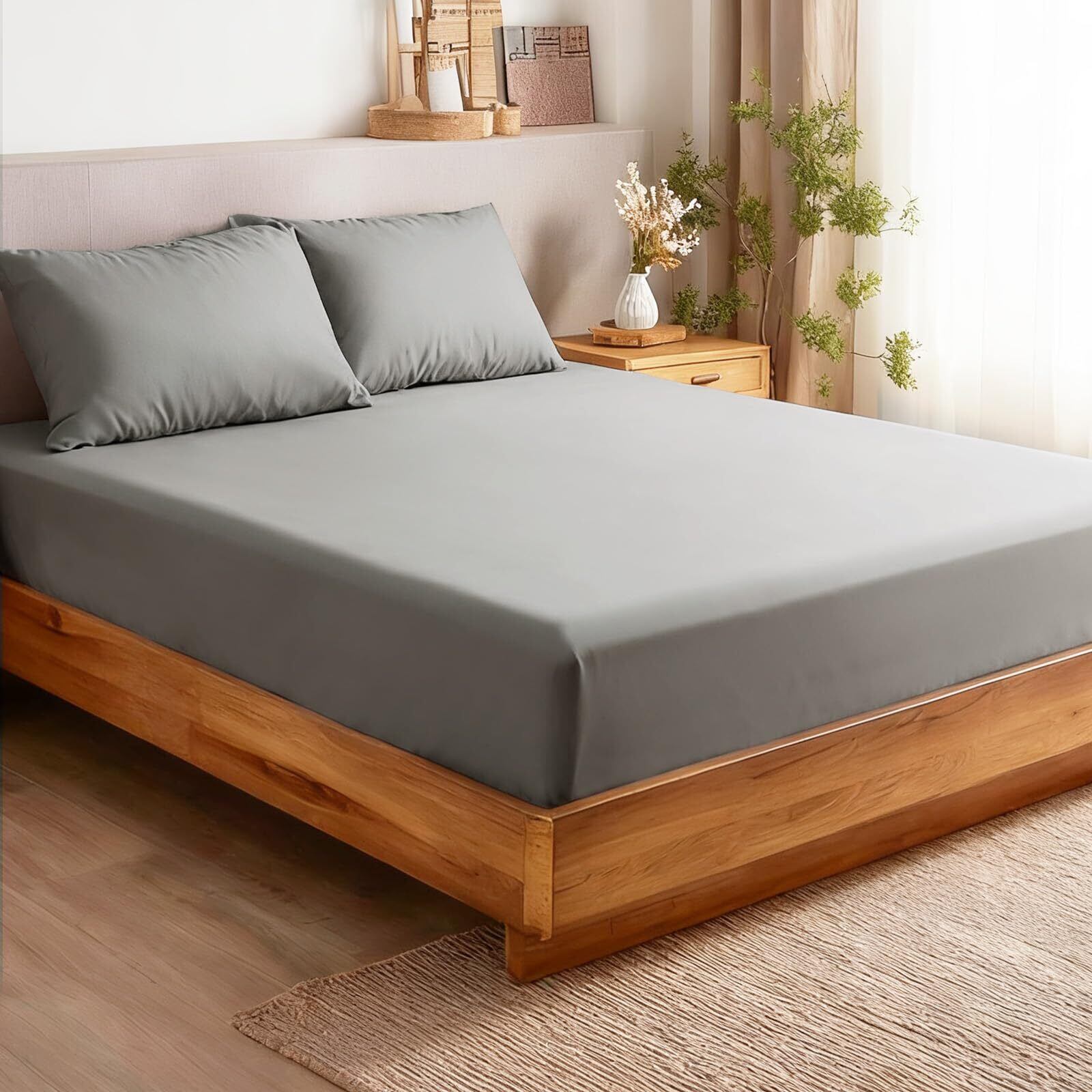 Gemarwel ボックスシーツ ダブル【銀イオン安全抗菌・吸湿速乾】 5~30cmのマットレスに対応 超柔ウォッシュ生地 通気性 ベッドシーツ マットレスカバー オールシーズン 洗える (ライトグレー, 140×200×30cm)