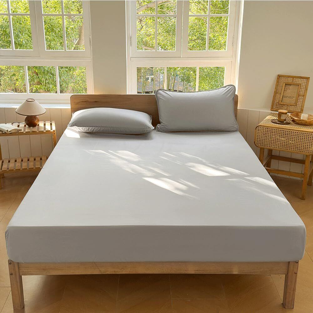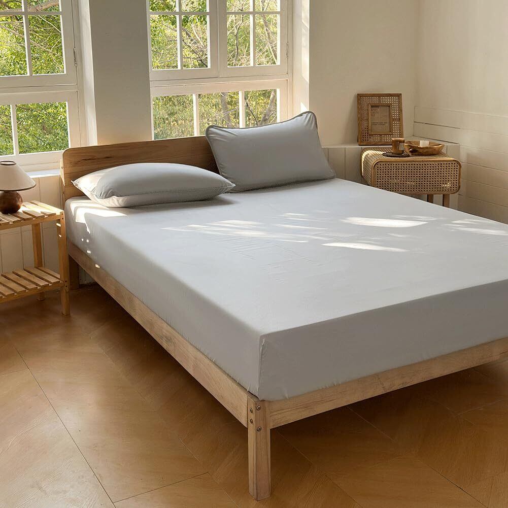 防ダニ ボックスシーツ セミダブル 120×200cm ダニを通さない生地 高密度繊維 防ダニ シーツ ベッドシーツ ハウスダスト対策 花粉症 ダニ防止 薬剤不使用 アトピー アレルギー(グレー, セミダブル)