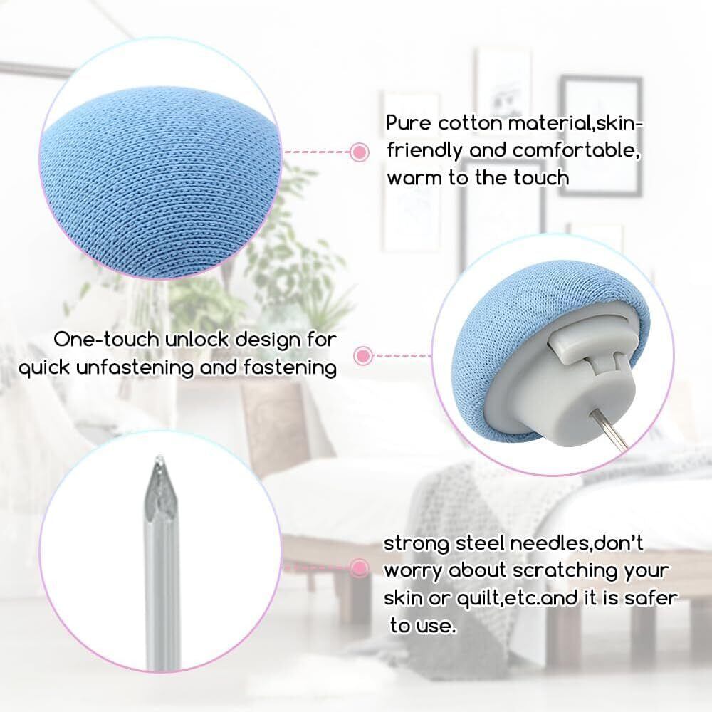 【操作便利】布団にクリップを通して、反対側の穴に釘を挿してボタンを押すだけで簡単に固定することができます。取り外す際も、ボタンを押すだけでロックを解除できるので、便利です。