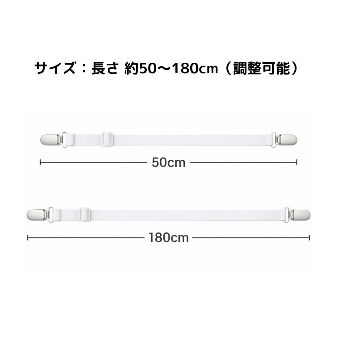 レジプロb ベッドシーツ固定クリップ 2本セット|布団・マットレスずれ防止|長さ調整50〜180cm|ゴムバンド式 ホワイト