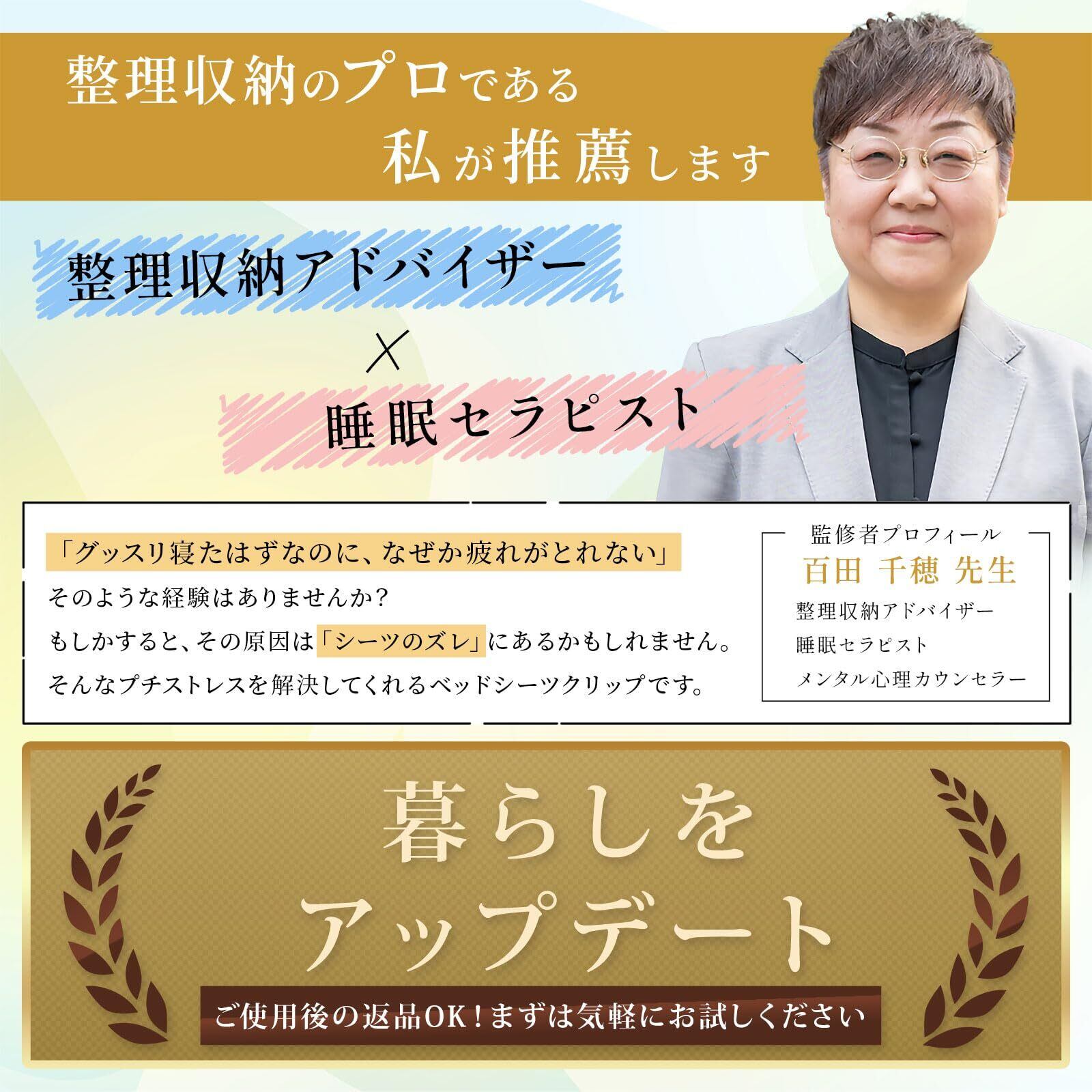 【どんなベッドにもフィット】 お手持ちのシーツをそのまま活用できるのが嬉しいポイント。シングルベッドからキングサイズまで、ボックスシーツでもフラットシーツでも、敷きパッドでも、ほとんどの寝具に対応しています。新しいシーツを買い直す必要はありません。透明なクリップだから、どんな色柄の寝具にも馴染んで、お部屋のインテリアを邪魔することもありません。ホテルのようなきちんと整ったベッドが、あなたのお部屋でも毎日楽しめます。家族みんなのベッドに使えるから、一度購入すれば長く愛用していただけるアイテムです。満ち足りた気分で眠りにつき、気持ちよく目覚める毎日を