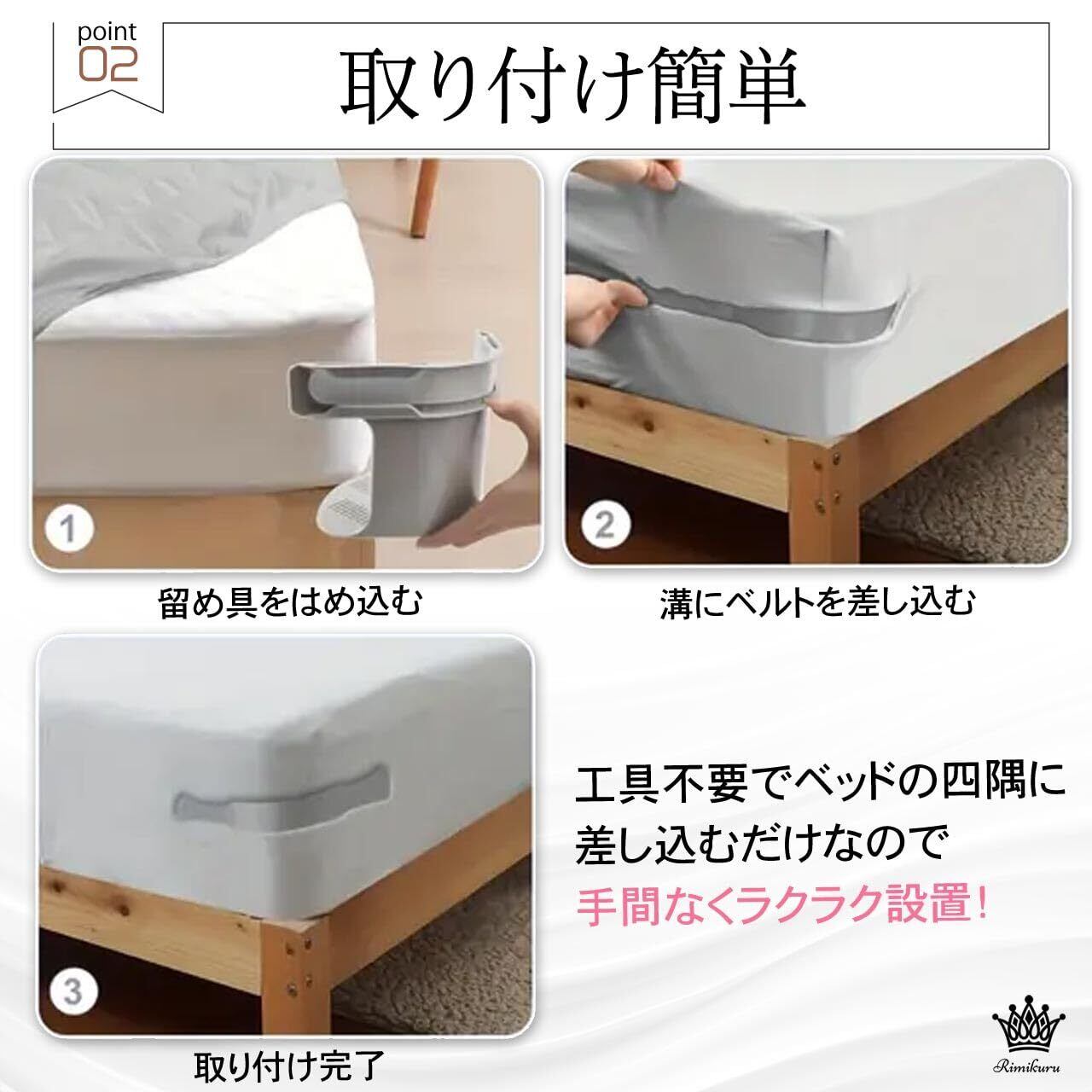取り付け簡単:こちらのベッドシーツクリップ 布団クリップは工具不要でベッドの四隅に差し込むだけなので、手間なくラクラク設置が可能です。調節式クリップはワンタッチで着脱でき、シーツ洗濯時もベルトを引き出すだけでスムーズに外せます。忙しい日常に大変便利で、毎日のベッドメイキングを快適にサポートします。