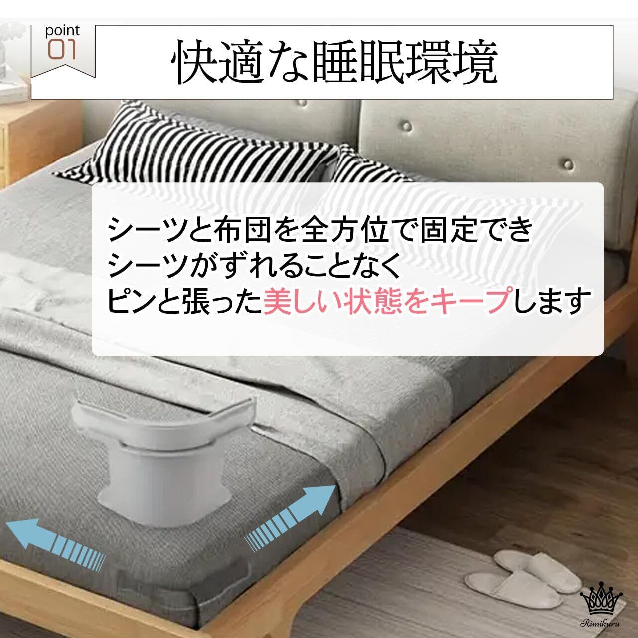 快適な睡眠環境:こちらのベッドシーツクリップはシーツと布団を全方位で固定することができるので、寝ている間に寝返りをしてもシーツがずれることなく、常にピンと張った美しい状態をキープします。シーツのシワやヨレによる不快感を解消し、まるでホテルにいるような上質な寝心地を味わうことができ、快適で心地よい睡眠環境を実現します。またご自宅はもちろんホテルなど様々なシーンで幅広くご使用いただけます。