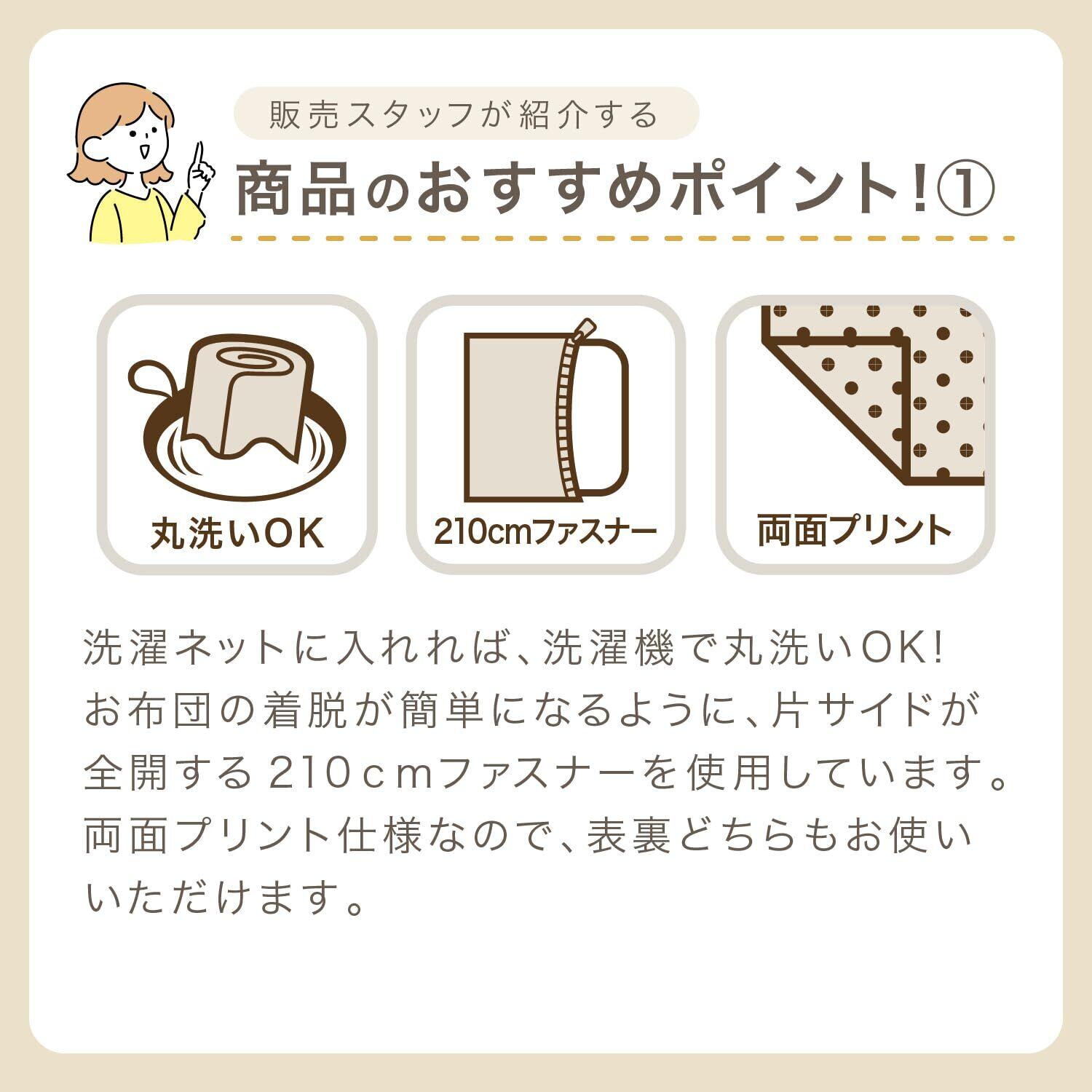 布団の出し入れがしやすい片側210cmファスナー仕様