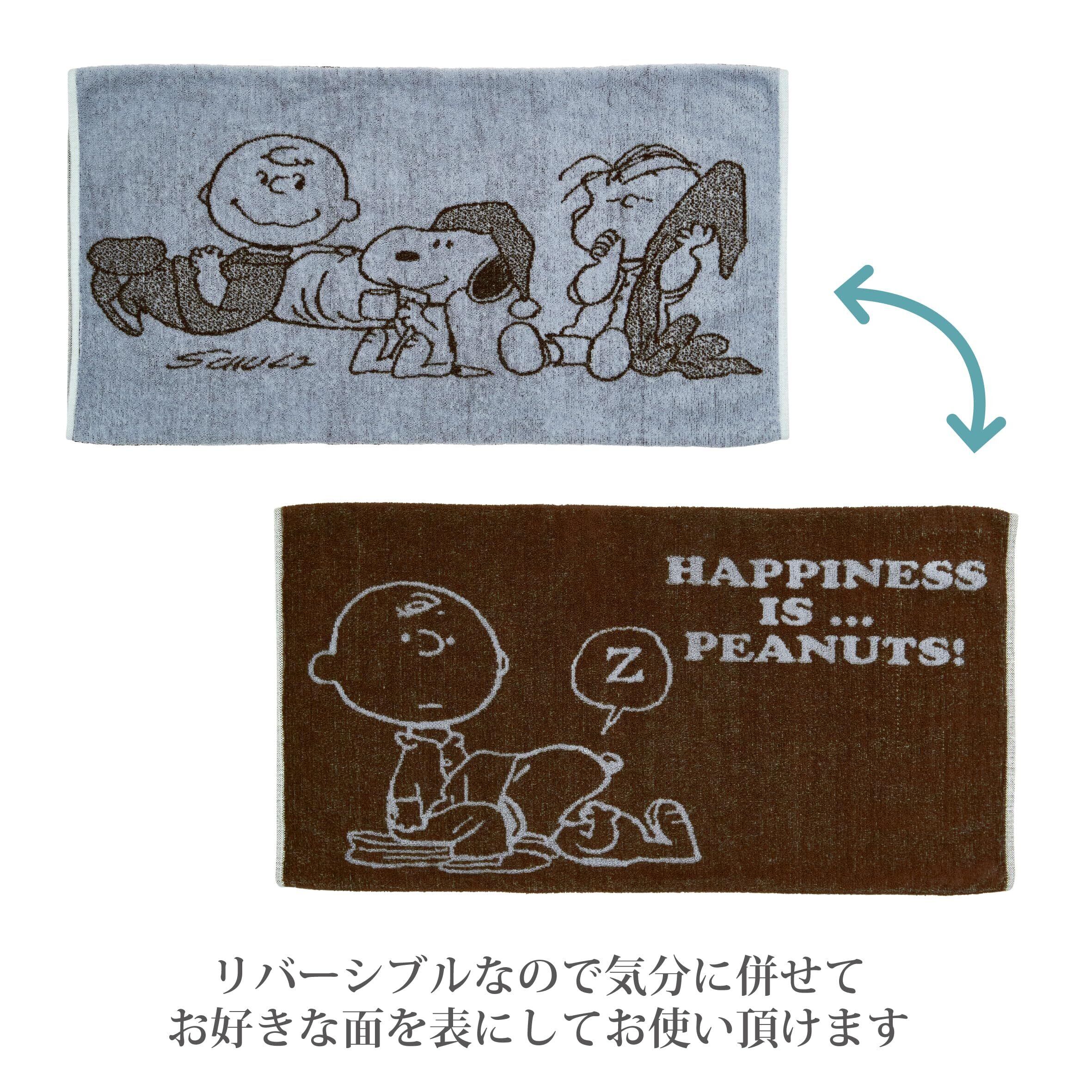 スヌーピーとパジャマを着た仲間たちがリラックスした表情の大人かわいいデザイン。優しいカラーがポイントです。