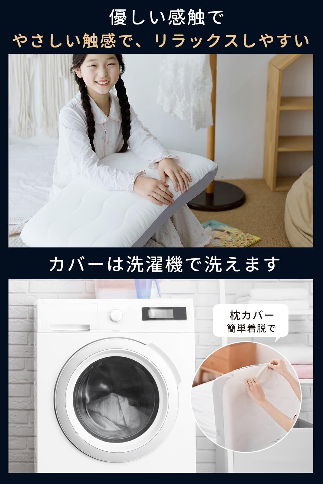 素材バランスの最適化 【素材バランスの最適化】 シリコン素材の配合を見直し、しなやかさと弾力のバランスを向上。 枕本体のサポート感を妨げず、自然な寝姿勢を保ちやすくなっています。