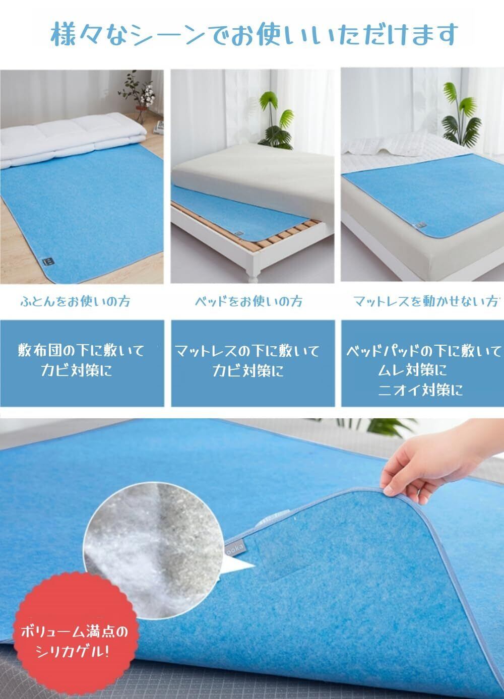 【ふとんの湿気をぐんぐん吸収する】フローリングの上に直接敷き布団を敷いた時、敷き布団の下の湿気が気になったことありませんか?敷くだけで湿気を強力吸収!ベッドでも床でも、敷き布団でもベッドマットレスでも、どちらでもご使用OK。敷き布団やベッドパッドの下に敷くだけで、ふとんの湿気をぐんぐん吸収して、効果抜群の便利アイテムです!