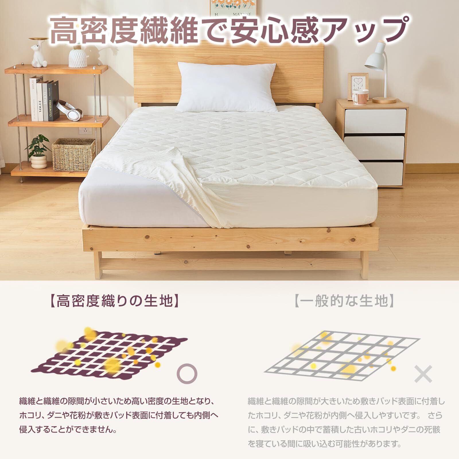 Housecover 敷きパッド セミダブル 敷パッド一体型 ベッドパッド パッド一体型ボックスシーツ 洗える 抗菌防臭 軽量 オールシーズン 防ダニ加工 ゴムバンド付き しきぱっと ベットパット 吸湿速乾 布団敷きパッド 癒しの肌触り シキパッド 無地 120x200x30cm アイボリー