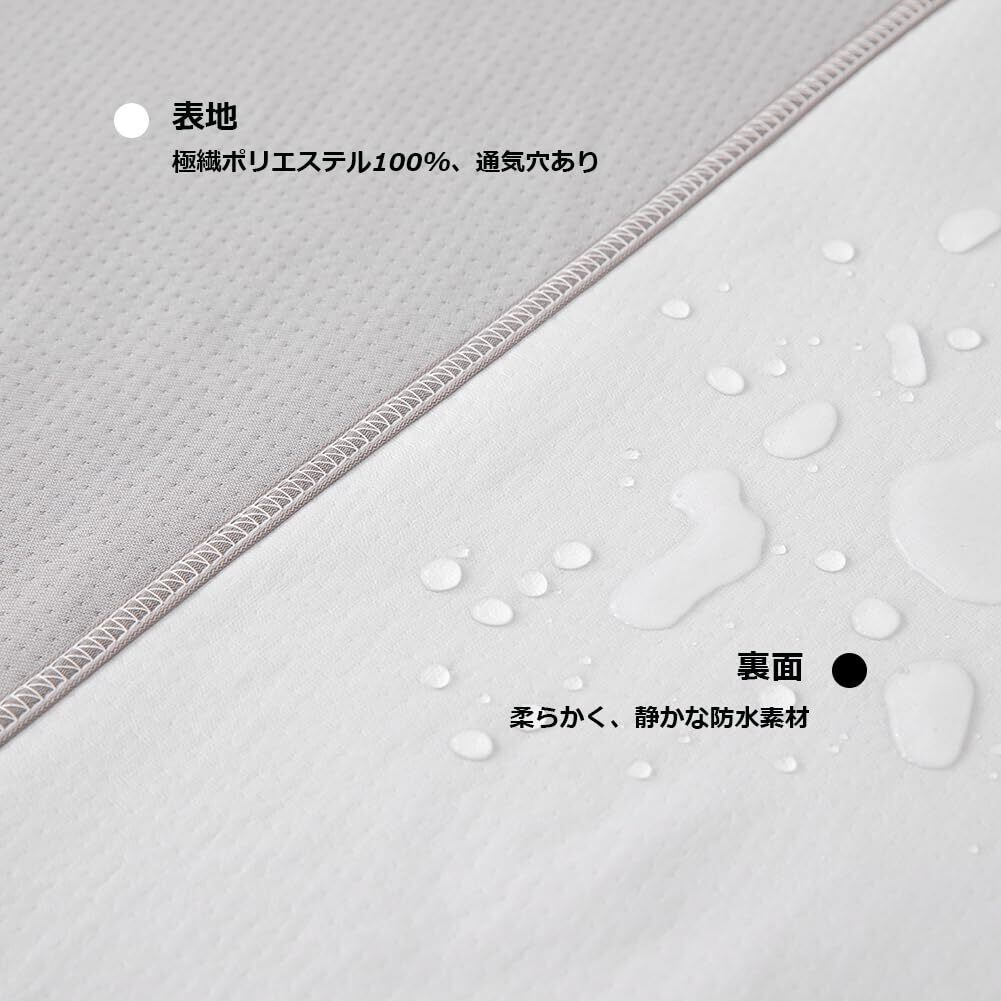 <防水性抜群>裏面は密度高い防水層を採用しています。100%防水性が実現できました。防水層は柔らかくて、普通の防水シーツのようなカサカサした音が立たなく、いつも静かです。その同時に防ダニ・防臭加工付き、皮膚が敏感な方も安心に利用いただけます。