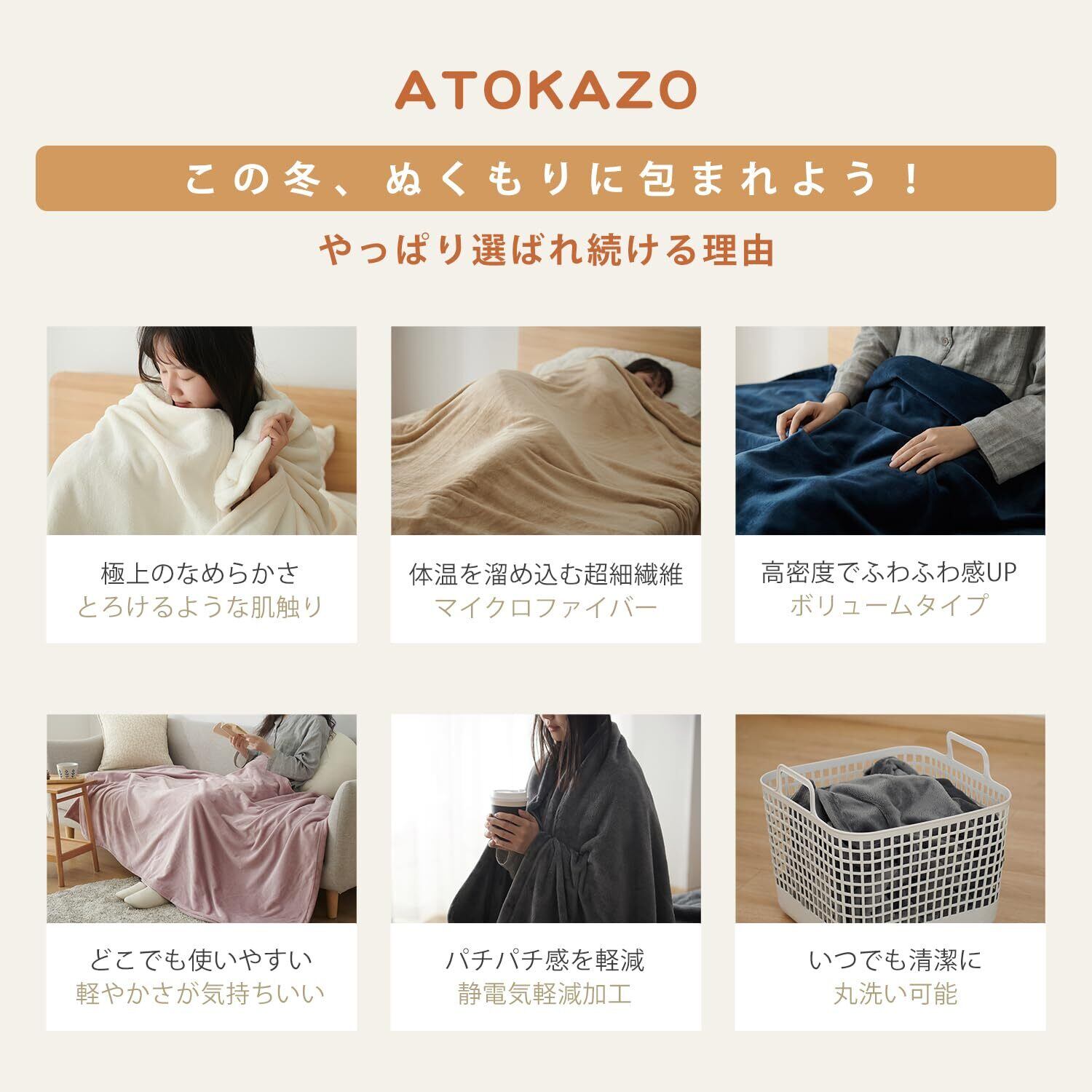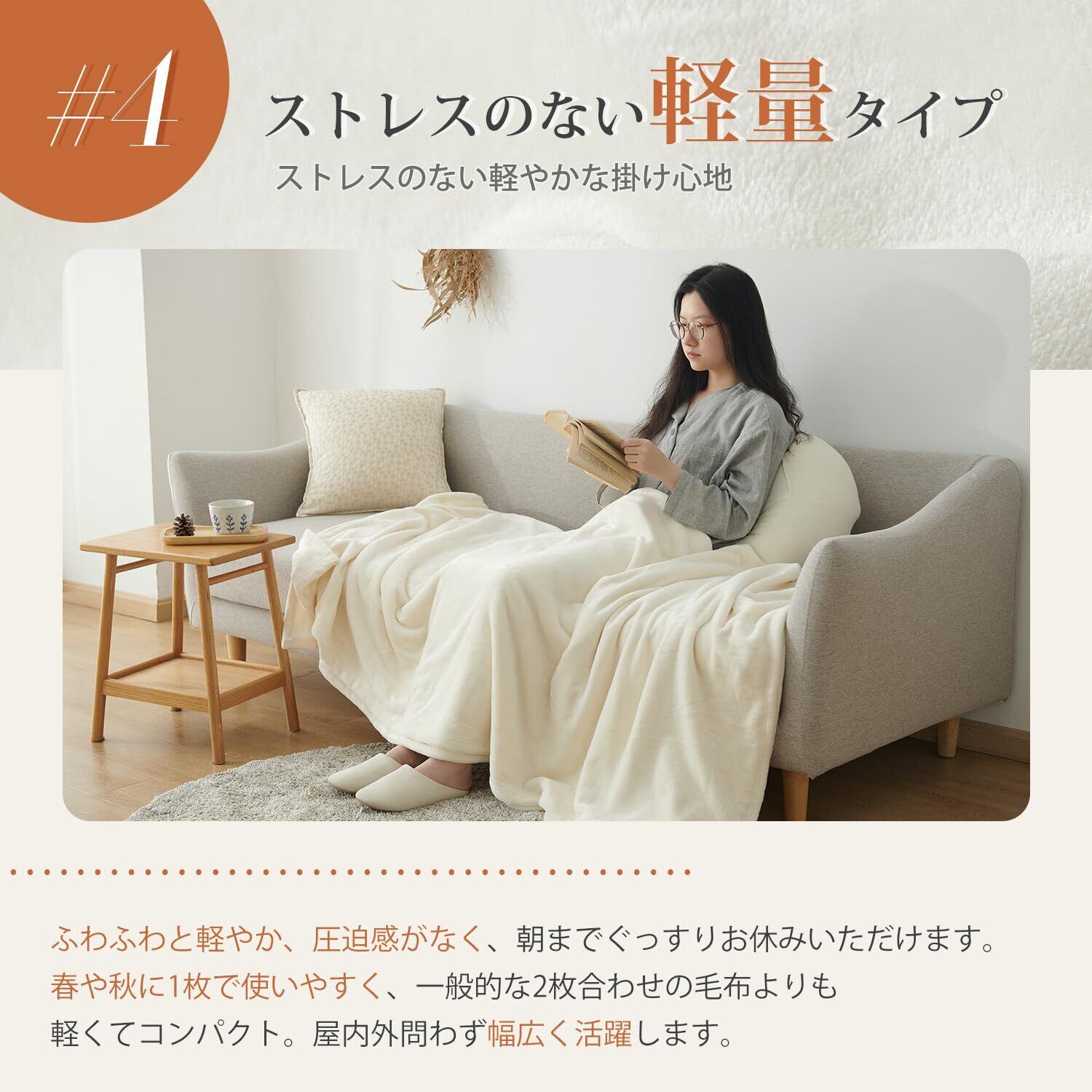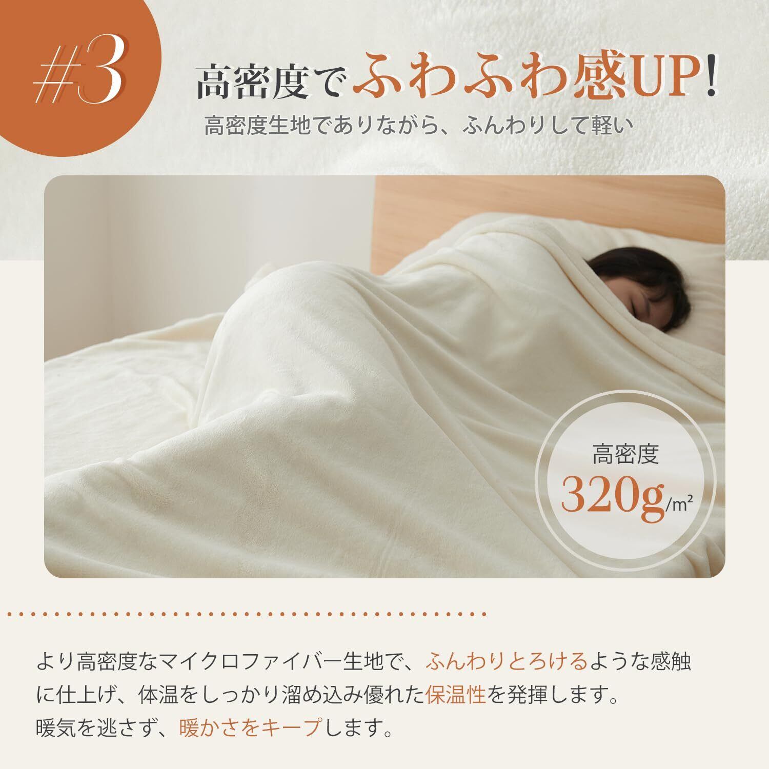 <ふんわりなめらかな極上の肌触り>:顔周りなど肌に直接触れる毛布の肌触りは非常に重要です。この毛布は驚くほどなめらかで心地よく、ふわりと柔らかく体を包み込む心地よさは、一度知ると手放せなくなります。毛玉ができにくい素材を使用しており、極上のプレミアムな感触が長く続きます。