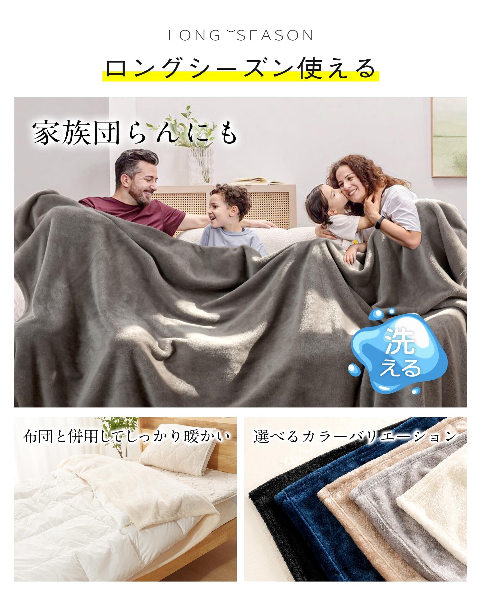 【ロング毛布&2WAYどころじゃない!】 の暖かい毛布は通常サイズよりも約40cm大きいロングサイズで、さまざまな使い方が可能です。➡ ①長身の男性でものびのび眠れます。➡ ②肩までたくし上げて、ふかふかの心地よさを楽しめます。➡ ③襟元を折り返して二重にしたり、ボリュームが2倍になります。➡ ④足元に巻き込んで冷え性対策にも最適です。➡ ⑤つま先から頭まで全身を覆うことができます。 特に冷えやすい足元や肩もしっかりと包んでくれるので、さまざまな使い方でより暖かくお休みいただけます。