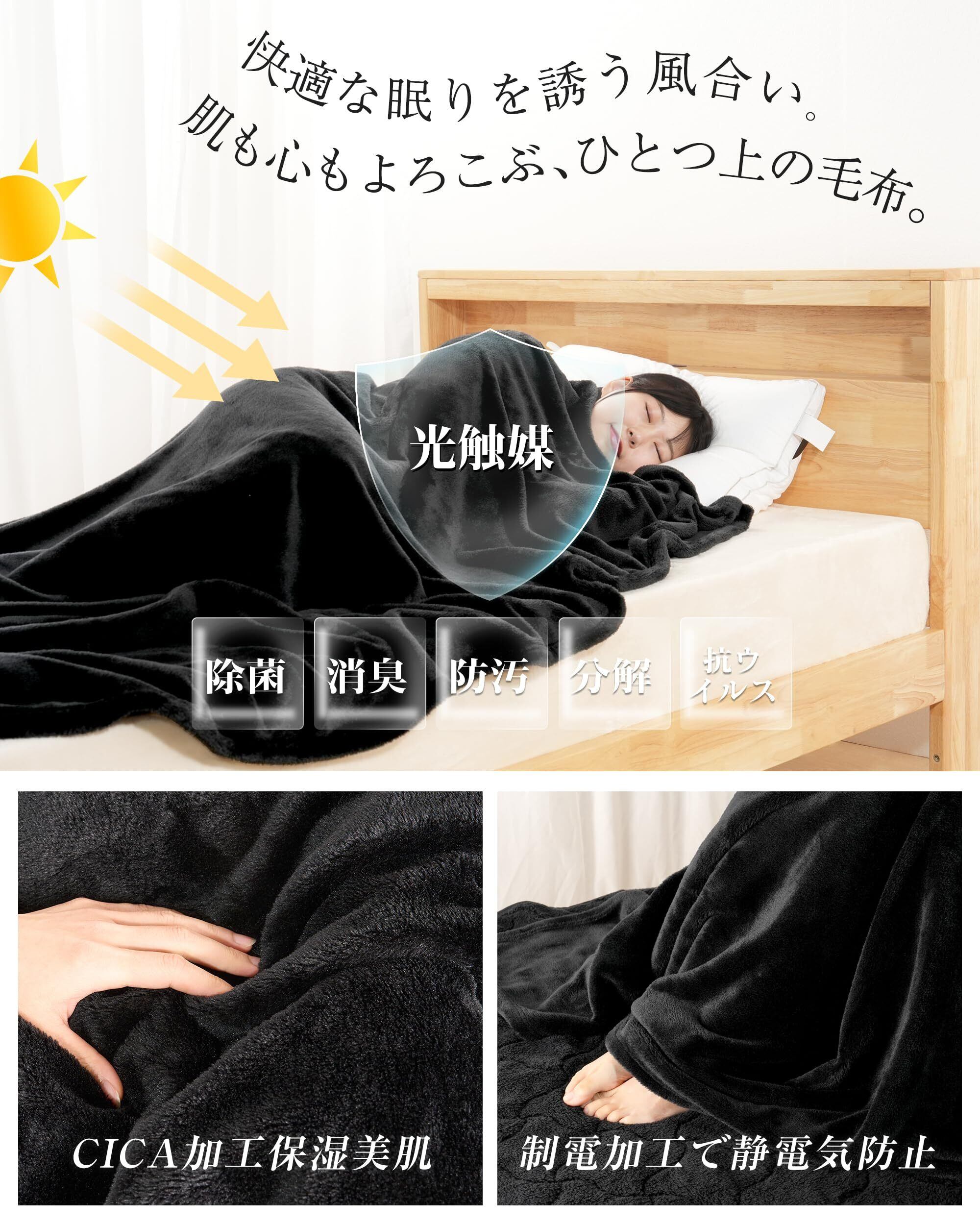 IMA HOME 【長さ+40cm】 ニューマイヤー 毛布 セミダブル 冬 あったか ブランケット 吸湿発熱 遠赤外線効果 ふわふわ なめらか 静電気防止 W抗菌防臭 すっぽり ゆったり 足がはみ出ない もうふ 軽量 オールシーズン 洗える(160×230cm ブラック)