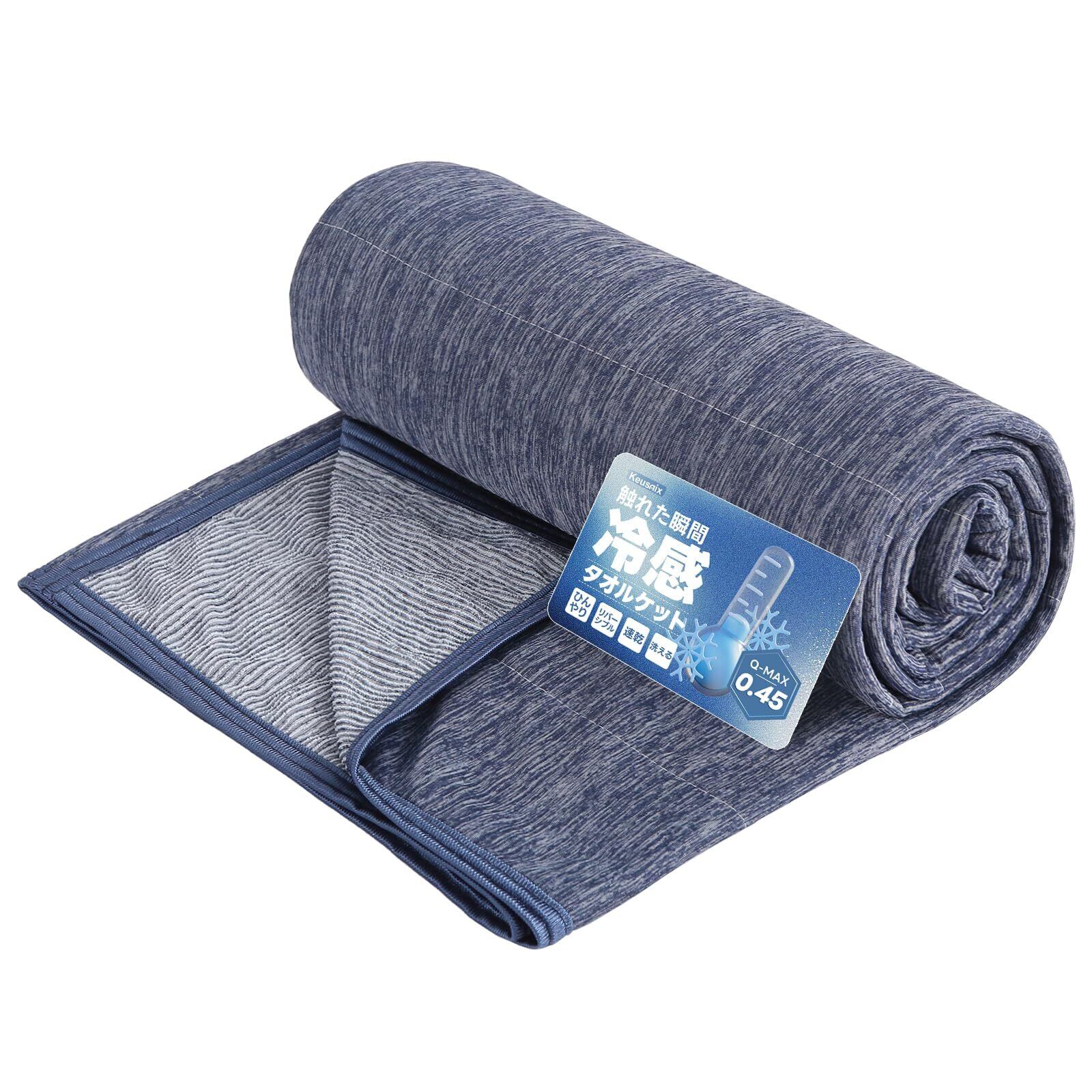 【数量限定】Keusnix タオルケット シングル 冷感 ひんやり 夏用 ブランケット 接触冷感 Q-MAX0.45 リバーシブル 冷感地&綿100%タオル地 キルトケット 冷感ケット 省エネ 節電対策 エアーケット クールケット れいかん 通気 洗える 吸水速乾 抗菌防臭 冷房対策 春夏秋兼用 140×200cm ネイビー